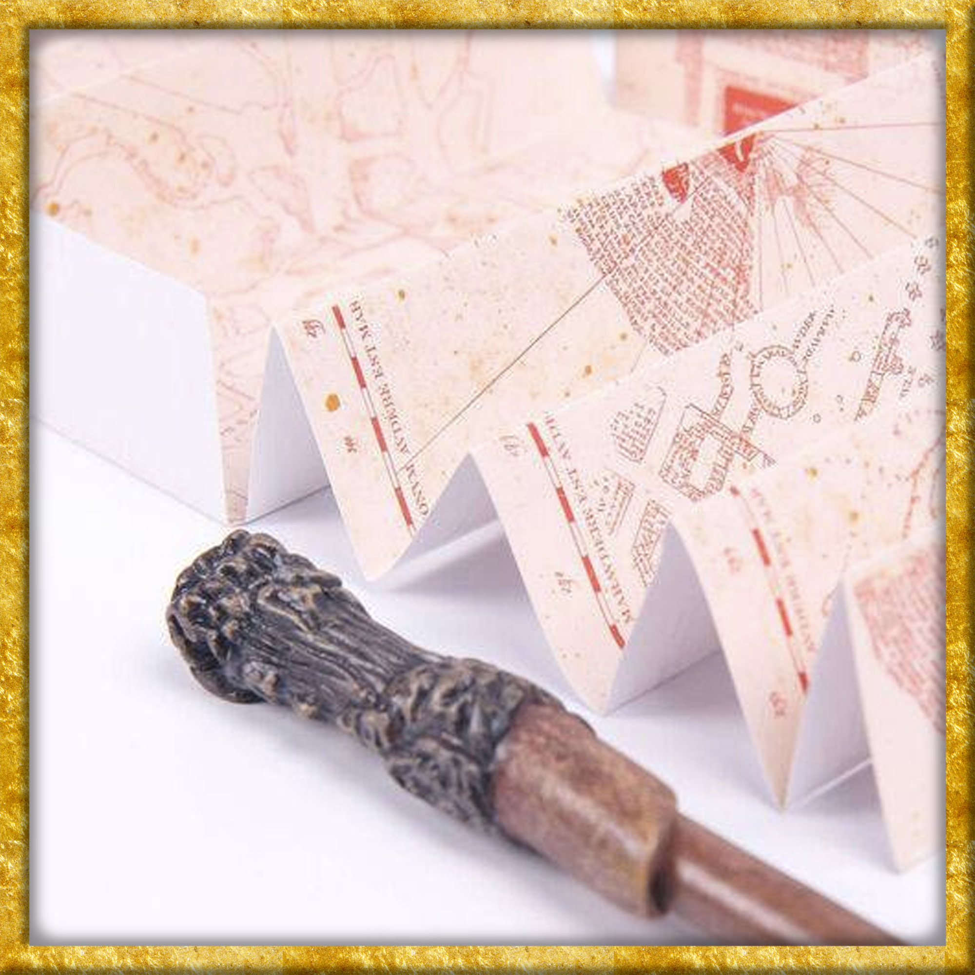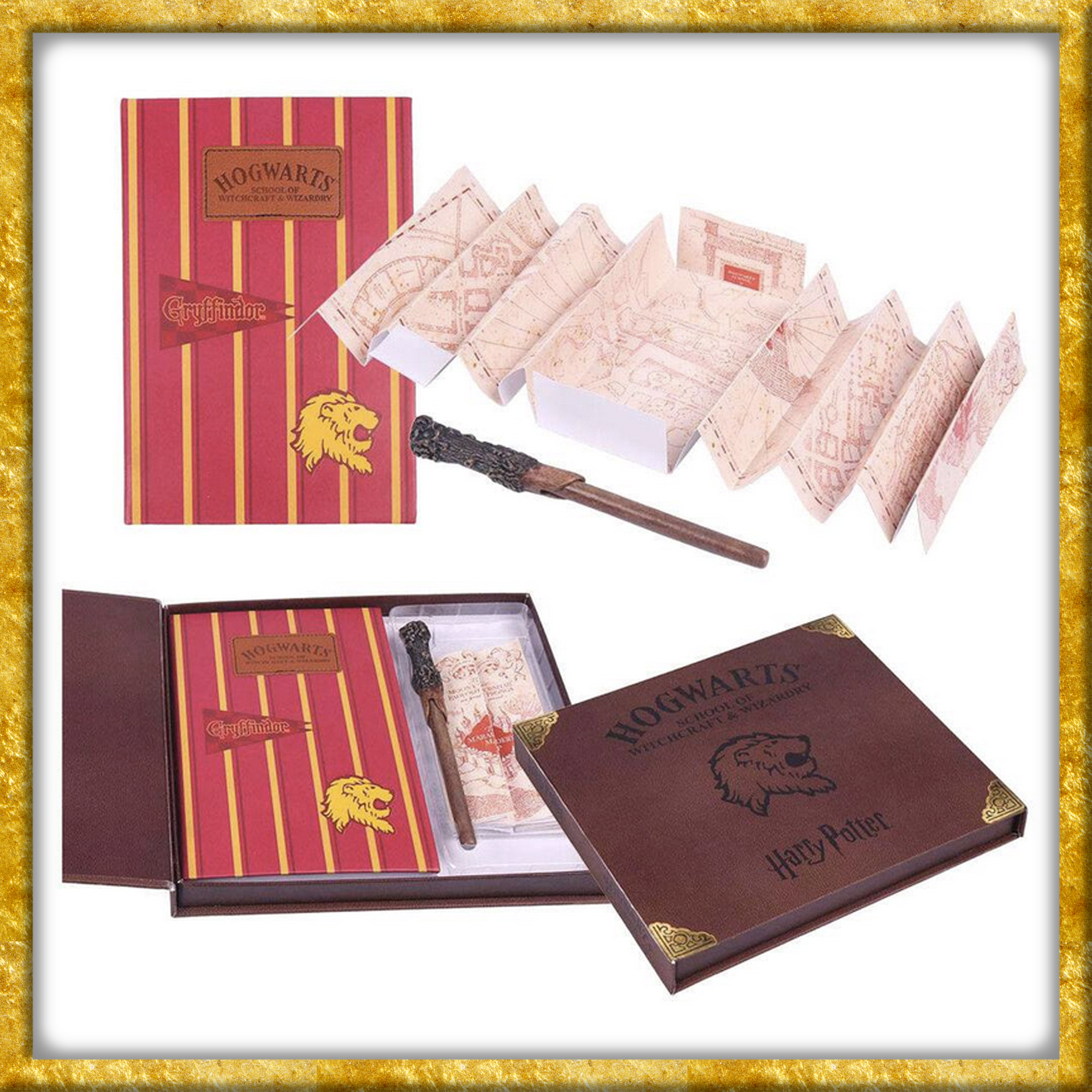 Dieses Harry Potter Schreibset Schule der Zauberei wird in einer edlen Box geliefert. Es enthält einen Kugelschreiber in Form von Harry's Zauberstab, ein Notizbuch Gryffindor und eine Karte des Rumtreibers. Mit diesem Schreibset macht die Schule gleich viel mehr Spass.