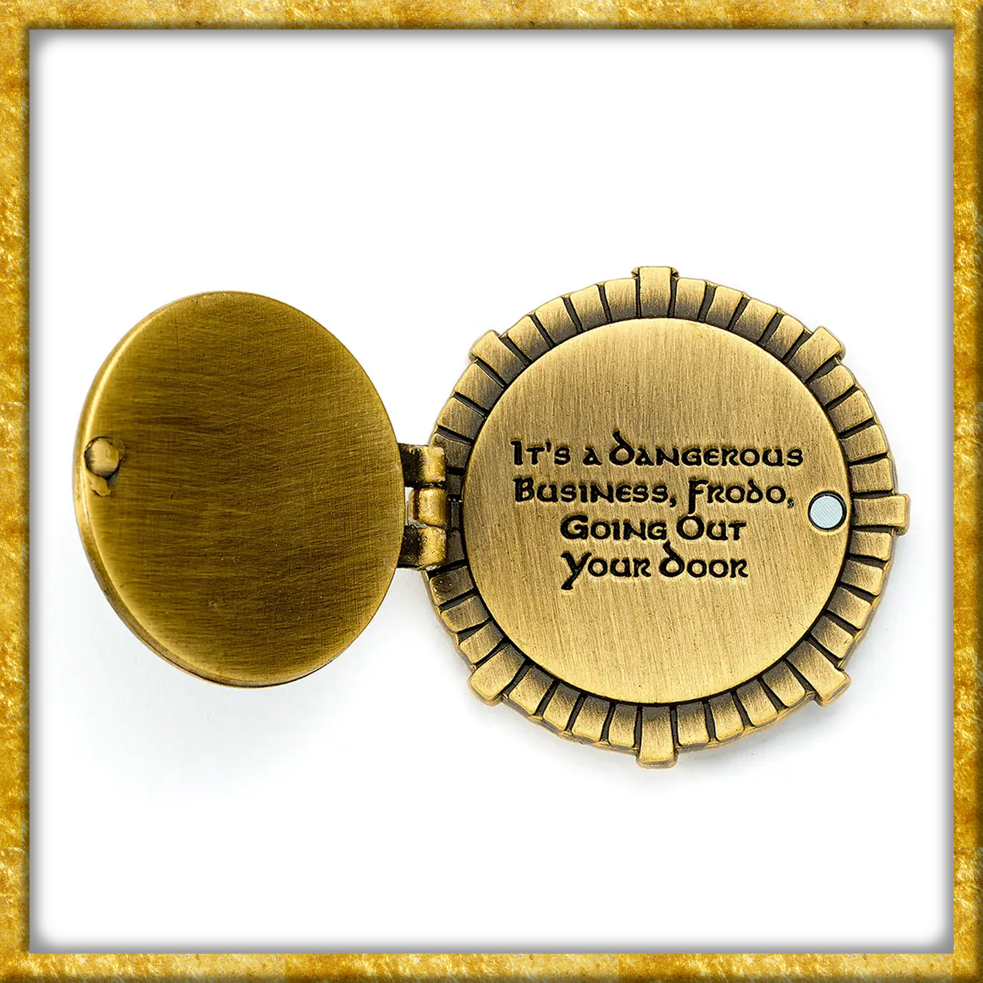 Entfesseln Sie den Zauber von Der Herr der Ringe mit diesem Hobbit-Tür-Ansteckpin, der von der ikonischen grünen Tür mit rundem Messingklopfer des Hobbit-Hauses inspiriert ist. Dieser Pin lässt sich öffnen und enthüllt eine versteckte Geheimnachricht mit dem ikonischen Zitat Es ist eine gefährliche Sache, Frodo, aus deiner Tür hinauszugehen. Als Teil einer offiziell lizenzierten Accessoire-Kollektion ist dieser Ansteckpin ein Muss für jeden Der Herr der Ringe Fan.