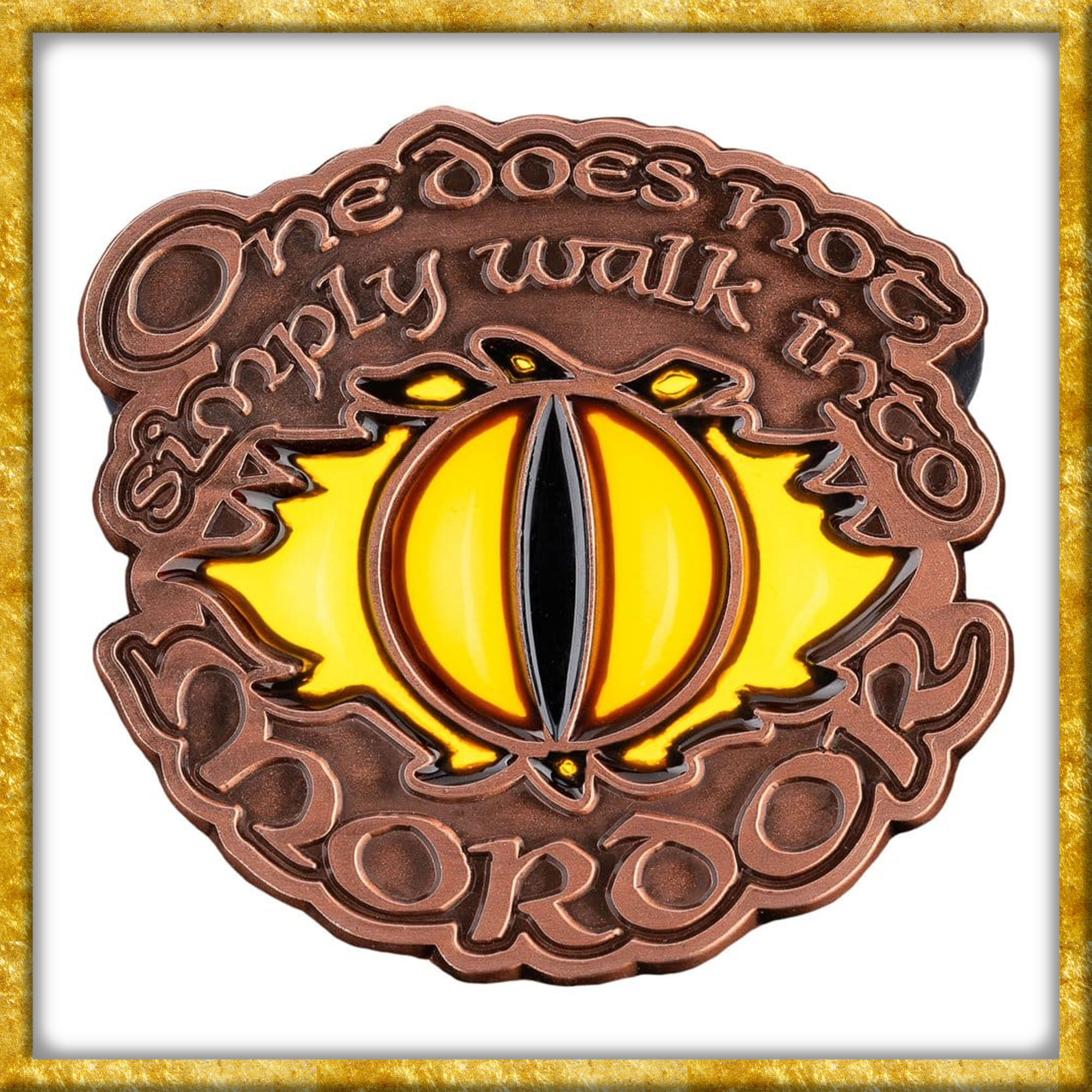 Erhellt Eure Sammlung mit diesem faszinierenden und offiziell lizenzierten Ansteckpin aus Herr de Ringe, die das unheilvolle Auge von Sauron und Boromirs unvergessliche Zeile zeigt. Das Auge besteht aus durchscheinendem Material und leuchtet, wenn es von hinten beleuchtet wird, wodurch die allgegenwärtige Präsenz von Sauron eingefangen wird. Der aus Messing gefertigte Ansteckpin hat eine Grösse von 4,3cm x 4,3cm x 1,7cm.