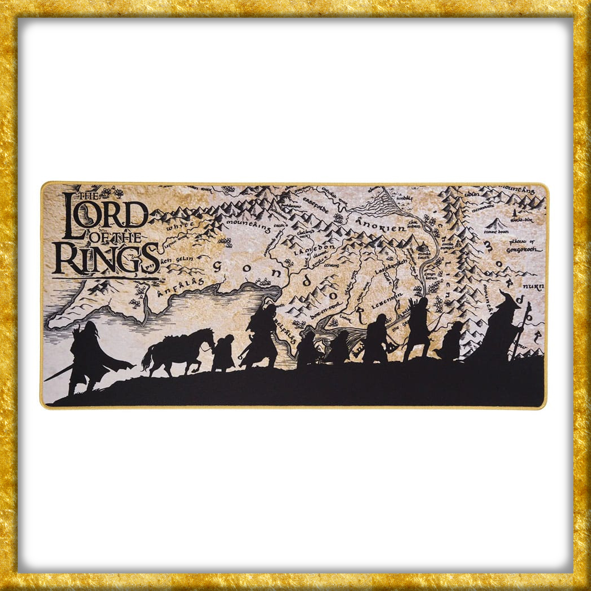 Dieses offiziel lizenzierte Schreibtischunterlage erweckt sowohl das die Gemeinschaft des Ringes aus Herr der Ringe als auch Eure Arbeitsfläche zum Leben! Die wasserabweisende Schreibtischunterlage zeigt unter anderem detaillierte, künstlerische Darstellungen der bekannten Landschaft aus Herr der Ringe. Die Unterlage ist mit einer rutschfesten Gummi-Unterseite und genähten Kanten ausgestattet. Die Schreibtischunterlage misst 90cm x 40cm.