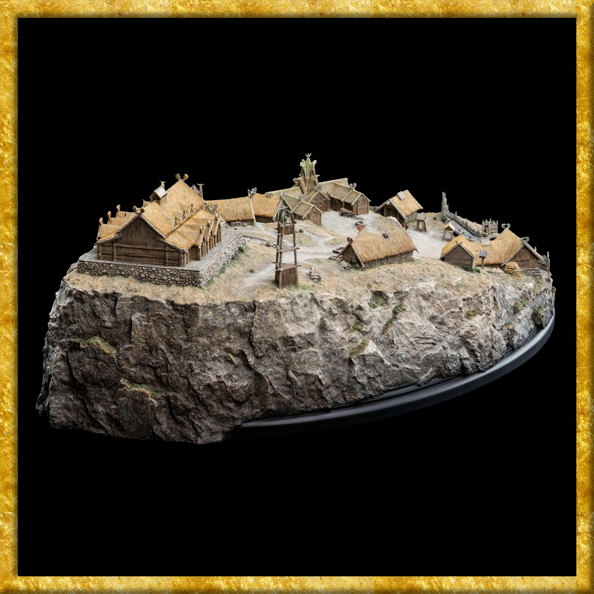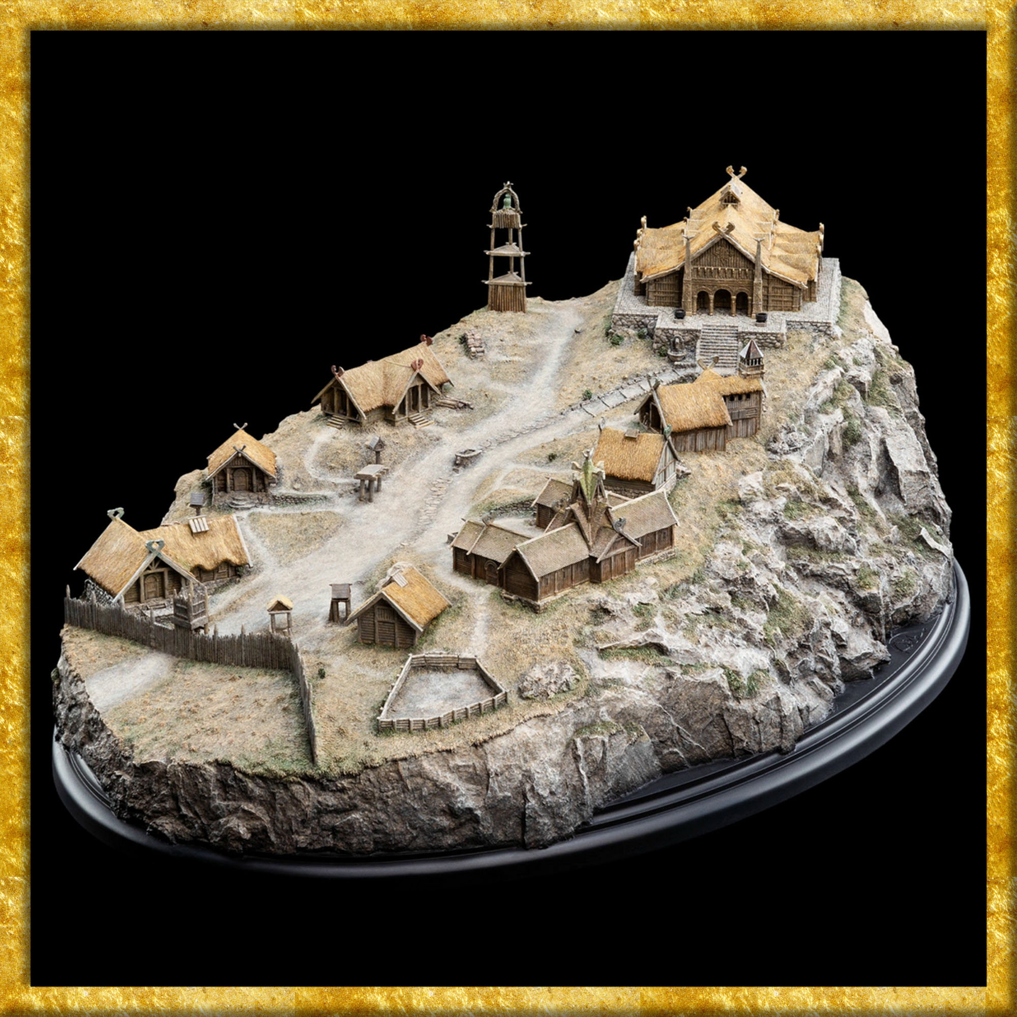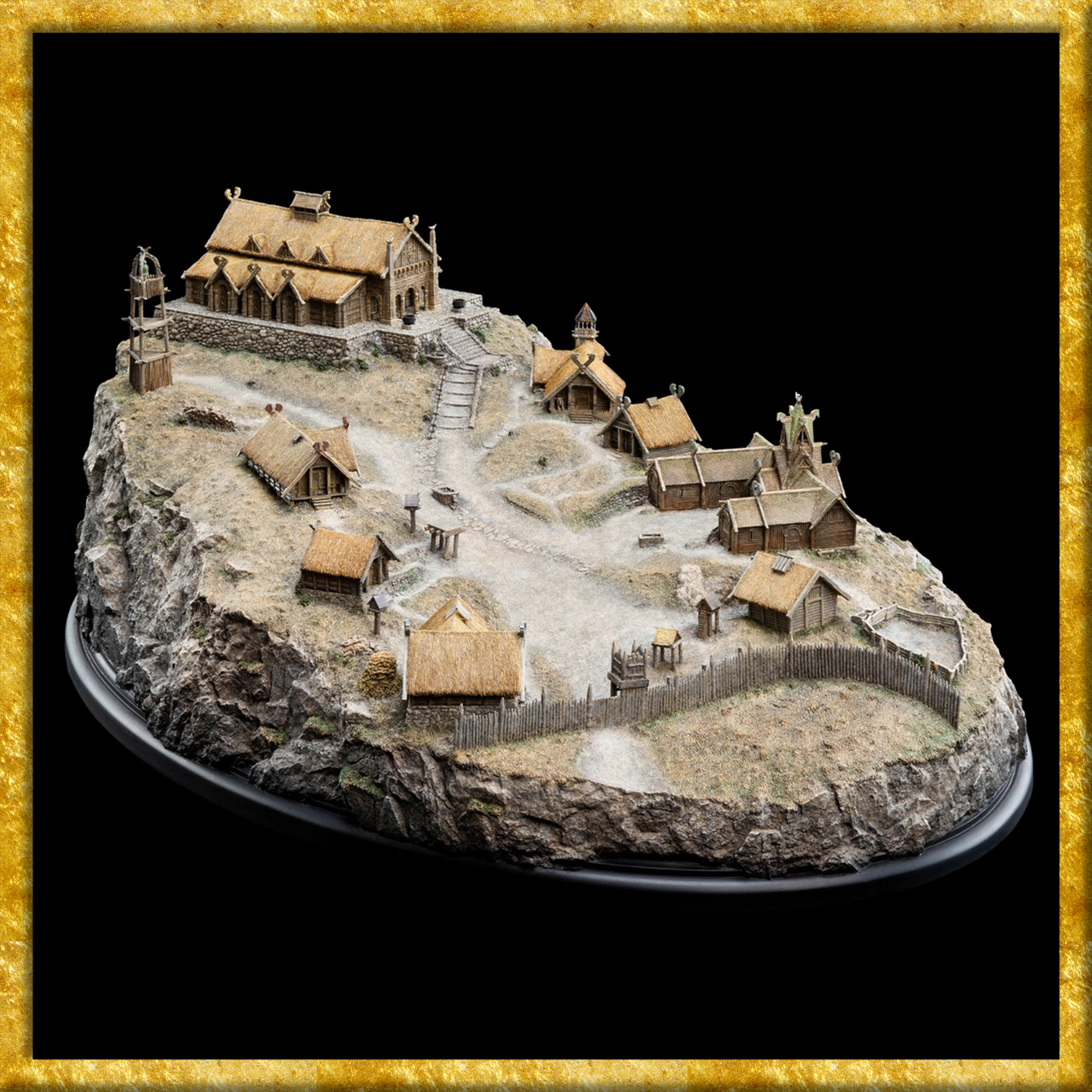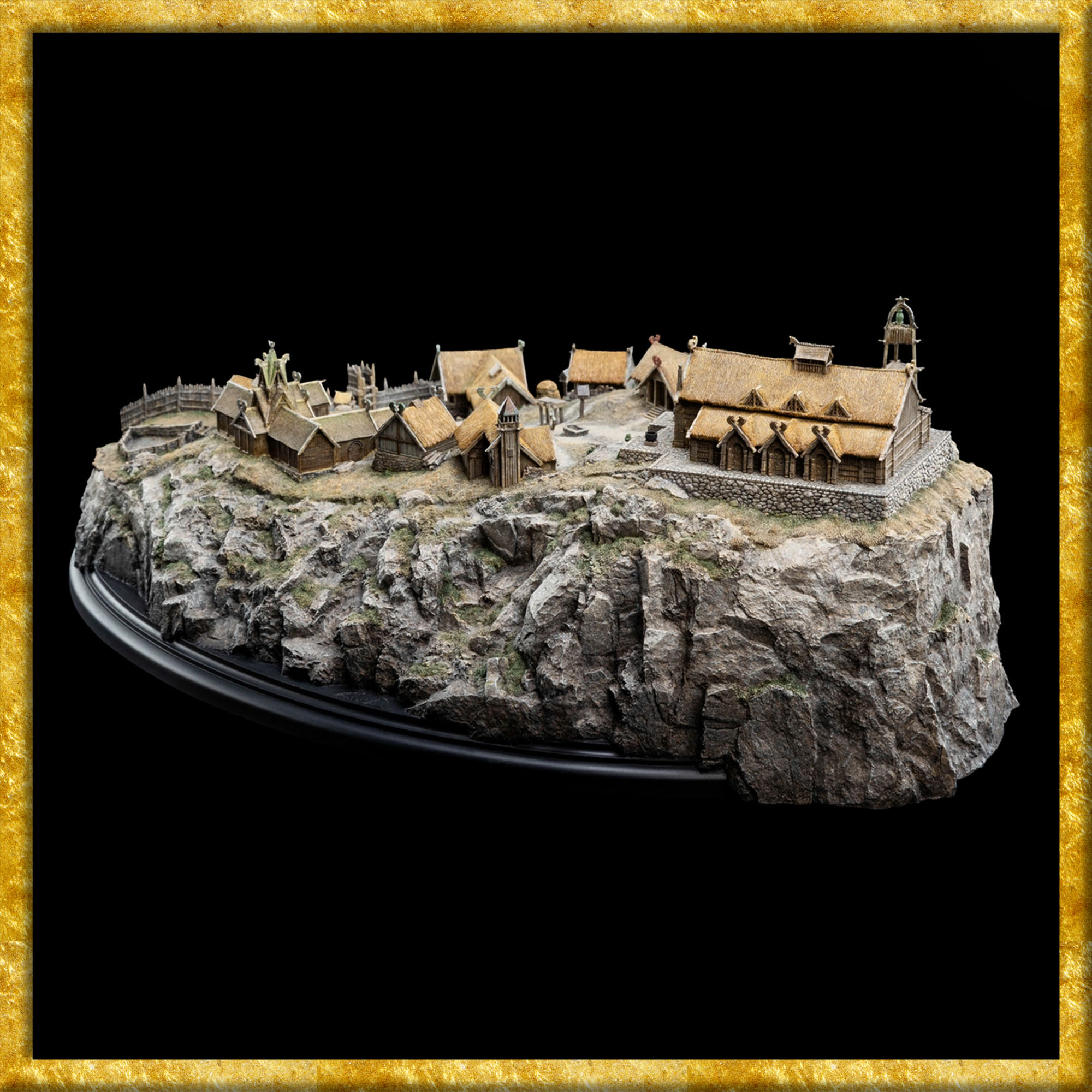 Aus der Filmreihe von Der Herr der Ringe kommt diese, auf 900 Stück limitierte und qualitativ hochwertige Statue von Edoras. Die detailreiche Statue ist ca. 31cm x 15,7cm x 48,4cm gross und wurde aus Resin gefertigt. Jedes Detail, von der majestätischen Goldenen Halle bis zu den Ställen und all den zerklüfteten Pfaden, die sich dazwischen schlängeln, wurde originalgetreu nachgebildet. Jedes handgeschnitzte Detail, jedes Strohdach und jedes gemeisselte Symbol wurde geschaffen, um das Erbe der Rohirrim zu ehren und die alte Schönheit der stolzen Stadt Rohan widerzuspiegeln.