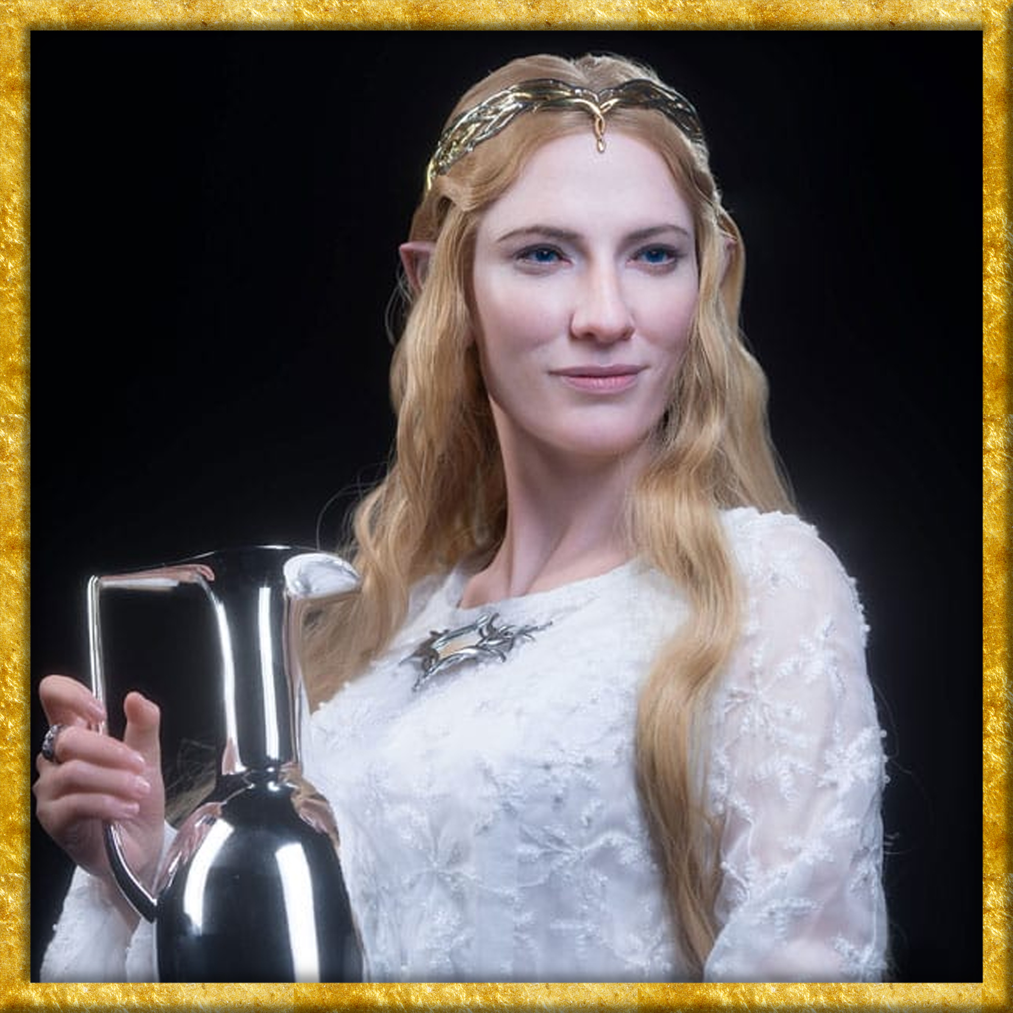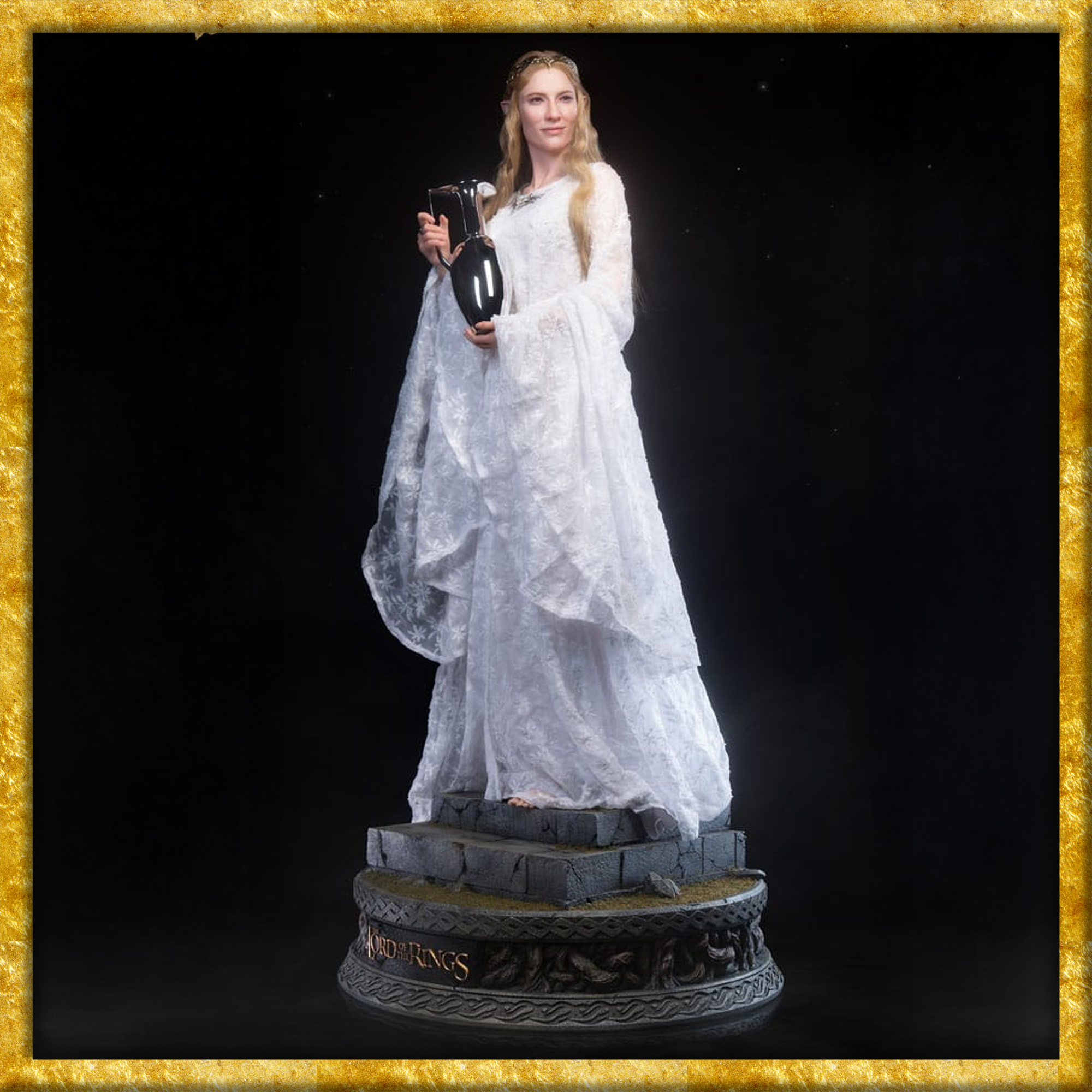 Diese aussergewöhnliche Galadriel-Statue ist ein wahres Meisterwerk für anspruchsvolle Sammler und echte Fans von Herr der Ringe. Inspiriert von der legendären Filmreihe zeigt sie die Elbenherrscherin in einer ruhigen, fast ehrfürchtigen Pose, den silbernen Krug behutsam in ihren Händen haltend. Ihre Ausstrahlung verkörpert Weisheit, Macht und jene zeitlose Eleganz, die Galadriel zu einer der faszinierendsten Figuren Mittelerdes macht.