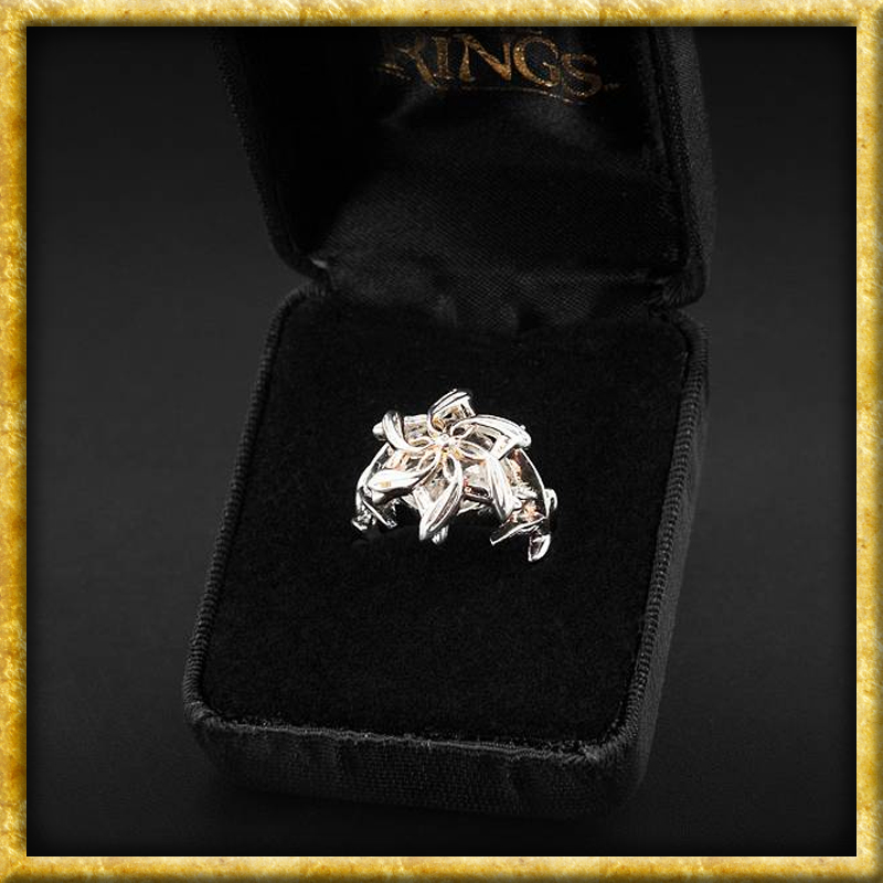 Galadriel ist der Inbegriff weiblicher Elbenschönheit. Doch sie ist nicht nur schön, sondern auch unsagbar mächtig, denn sie trägt Nenya, den Ring des Wassers. Jedes ihrer Schmuckstücke betont die Weiblichkeit der Trägerin.