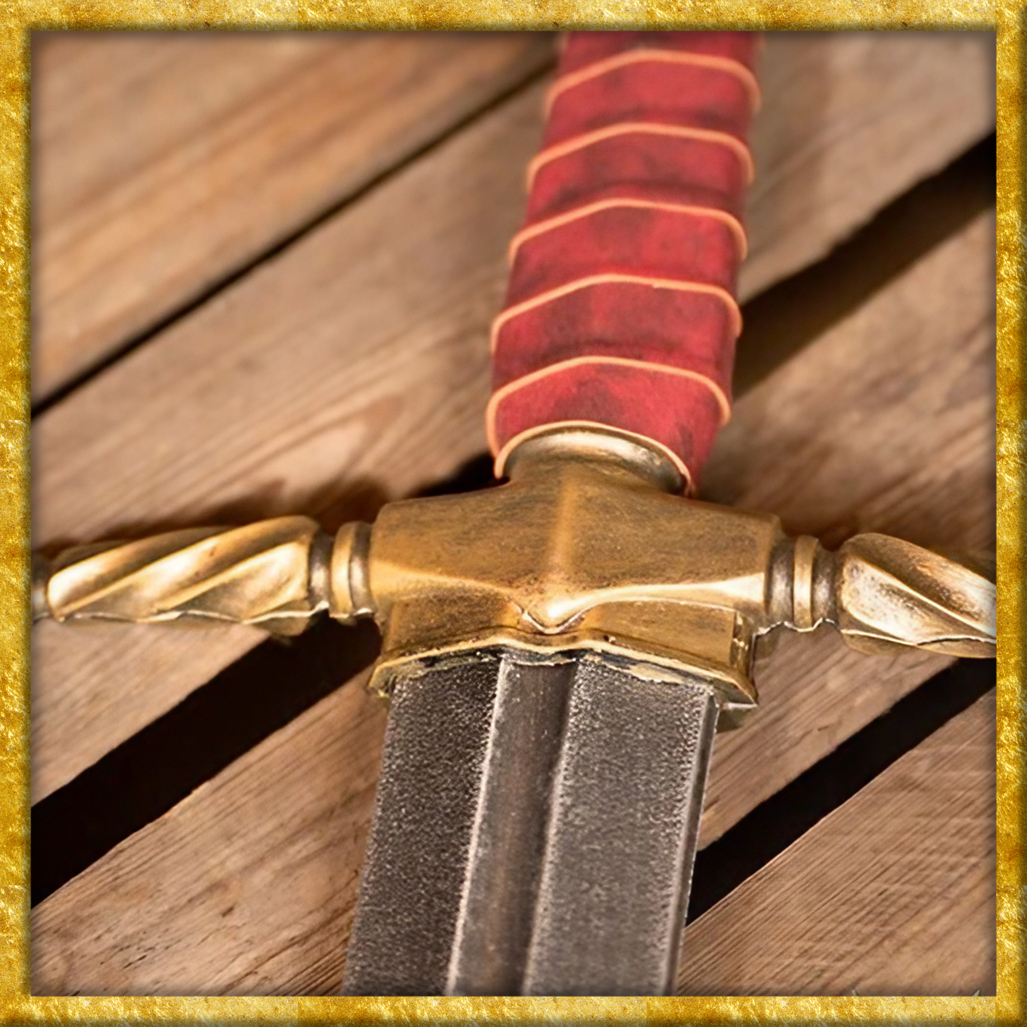 Speziell für den Full-Contact-LARP entwickelt, überzeugt das Schwert durch höchste Sicherheit und Robustheit. Die Klinge aus latexfreiem PU-Schaum um einen ovalen Fiberglaskern mit verstärkter Spitze hält selbst intensiven Kämpfen stand. Der lange, ausgeformte Klingenrücken geht in eine stabile, sechseckige Basis über, ergänzt durch ein modelliertes Ricasso bei der längeren Version dieses Schwerts für besseren Griff und Hebelwirkung. Der markante Griff beeindruckt mit spiralförmiger Parierstange und einteiligem Knauf, überzogen mit Leder für optimalen Halt und Komfort. Die ovale Form sorgt für geschmeidige Bewegungen, während das kraftvolle Design die Tradition kampferprobter Krieger widerspiegelt.