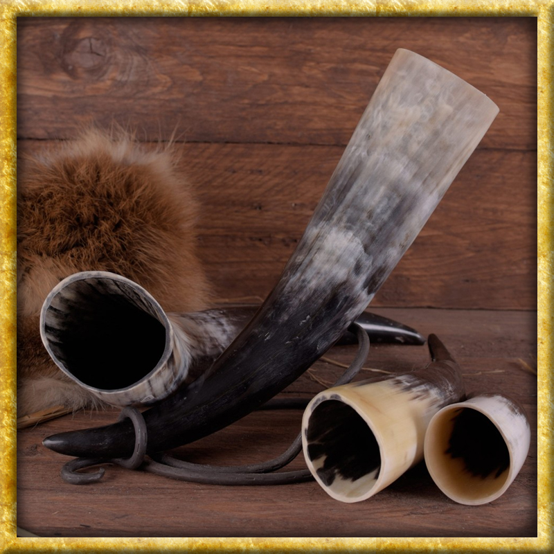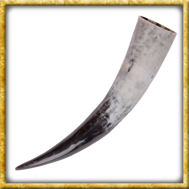 Dieses Trinkhorn fasst zwischen 2'000 - 2'490ml. Sowohl zu Zeiten der Wikinger, als auch im Mittelalter war das Trinkhorn ein verbreitetes Trinkgefäss. Daraus wurde bei zünftigen Gelagen unter anderem der bekannte Honigwein bzw. Met genossen. Unsere Trinkhörner sind ideale Geschenke für Mittelalter und Wikinger Fans oder LARP sowie Reenactment. Die Hörner sind von aussen poliert, was ihnen eine sehr glatte Oberfläche verschafft. Von innen sind sie mit hochwertigem Lebensmittellack lackiert, welcher Speichelfest und Alkoholresistent ist.