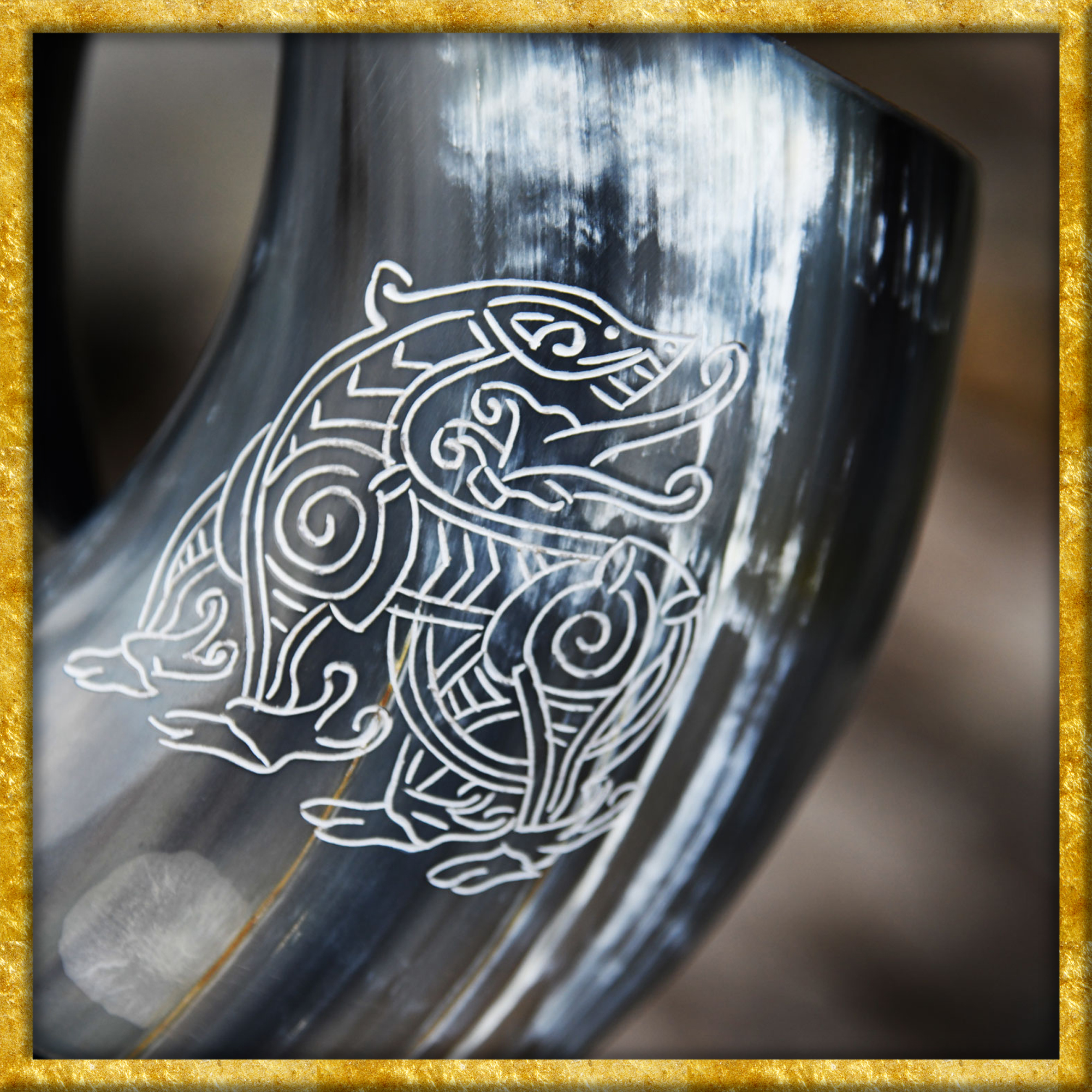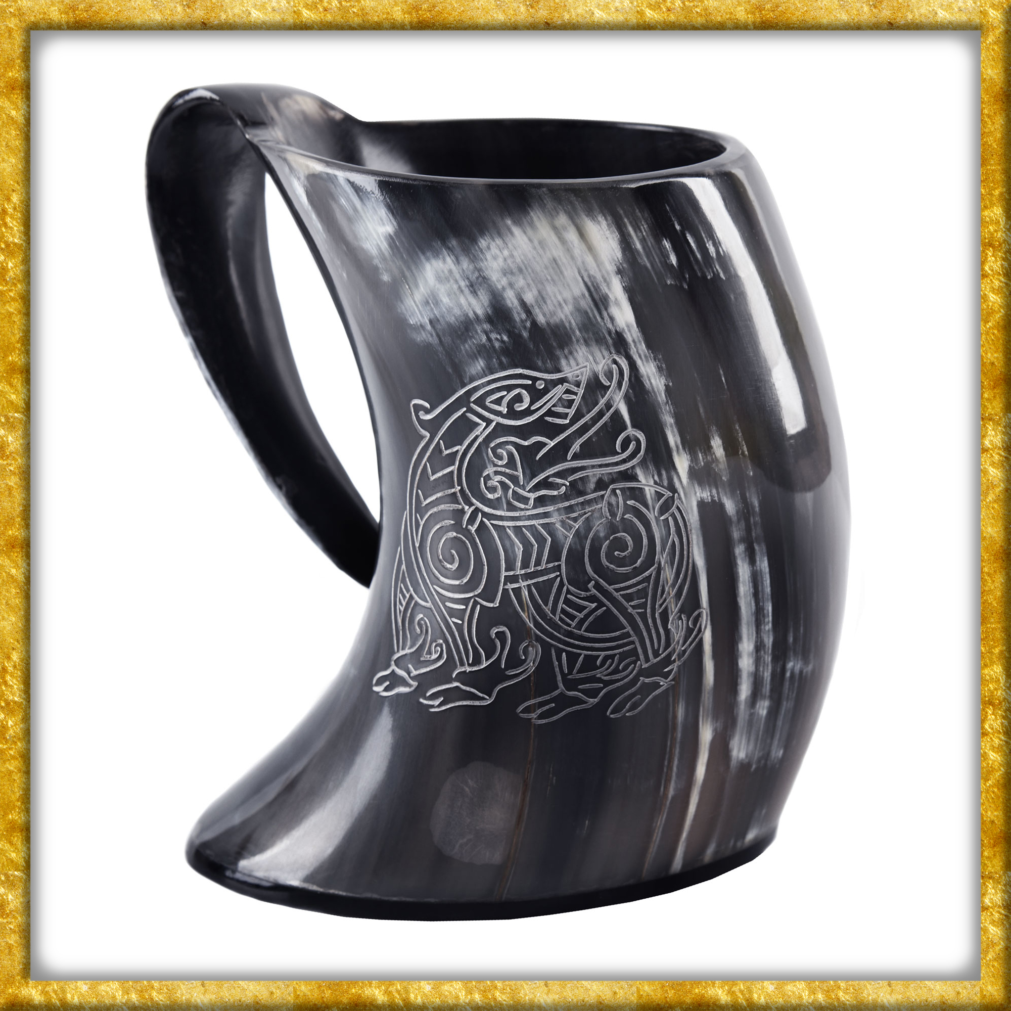 Weiterführende Links zu "Verzierter Hornkrug mit Drachenmotiv - ca. 700ml"
