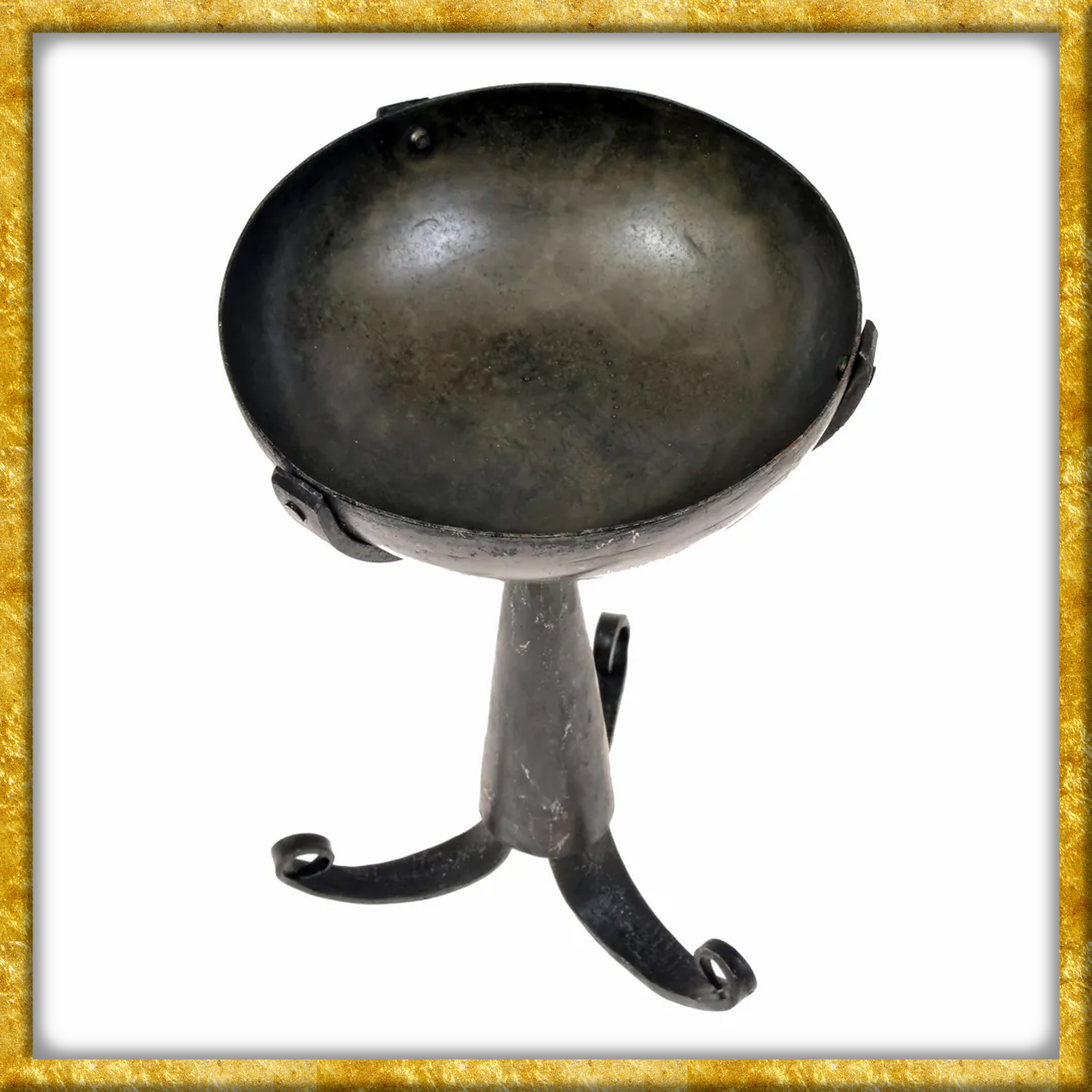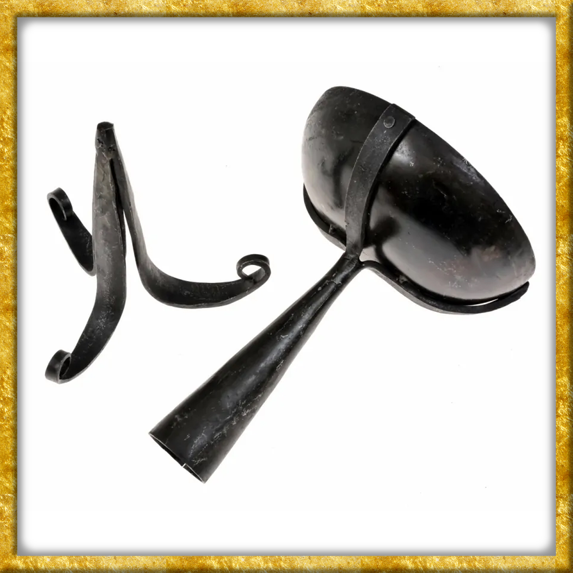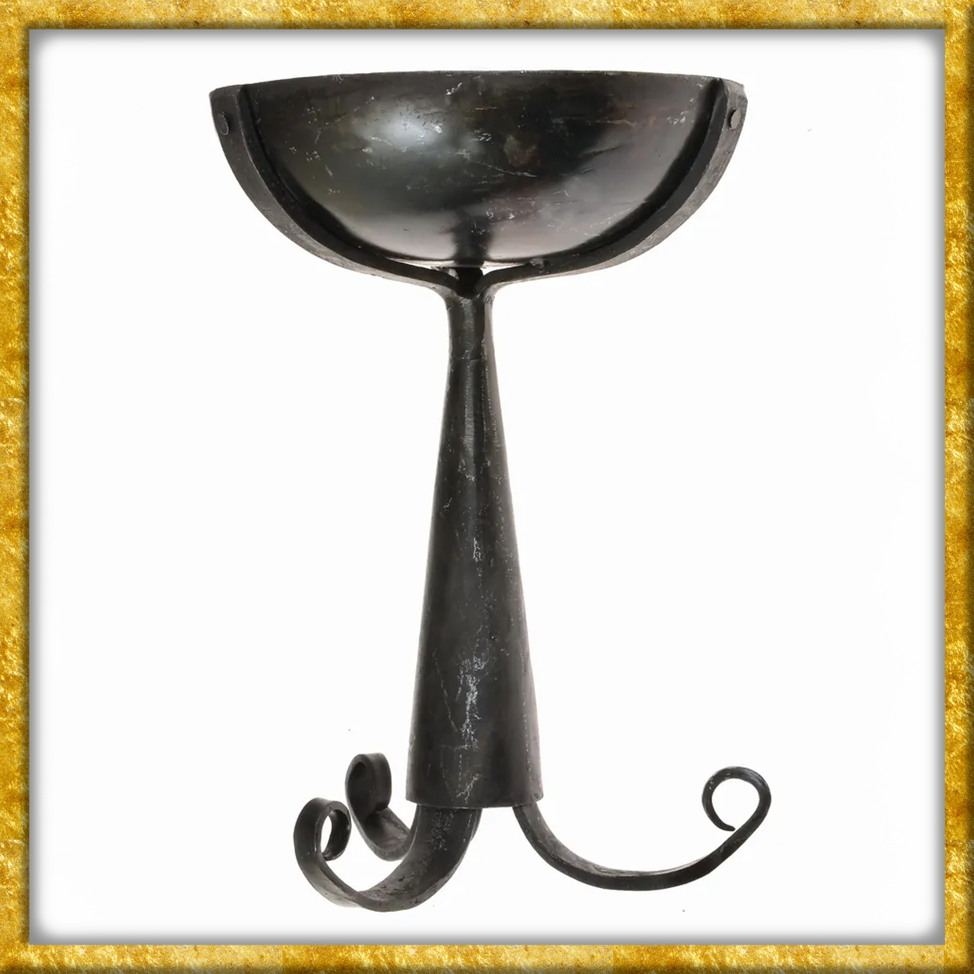 Diese mittelalterliche Schalenlampe eignet sich ideal für eine authentische Beleuchtung im Stil des Mittelalters. Die aus Eisen geschmiedete Schalenlampe ist mit einer langen Tülle versehen, die auf einem separaten Ständer steckt. So kann man die Lampe bequem auf einem Tisch platzieren, oder die Lampe ohne den Untersatz stattdessen auf einem in die Erde gesteckten Stab in beliebiger Höhe platzieren.