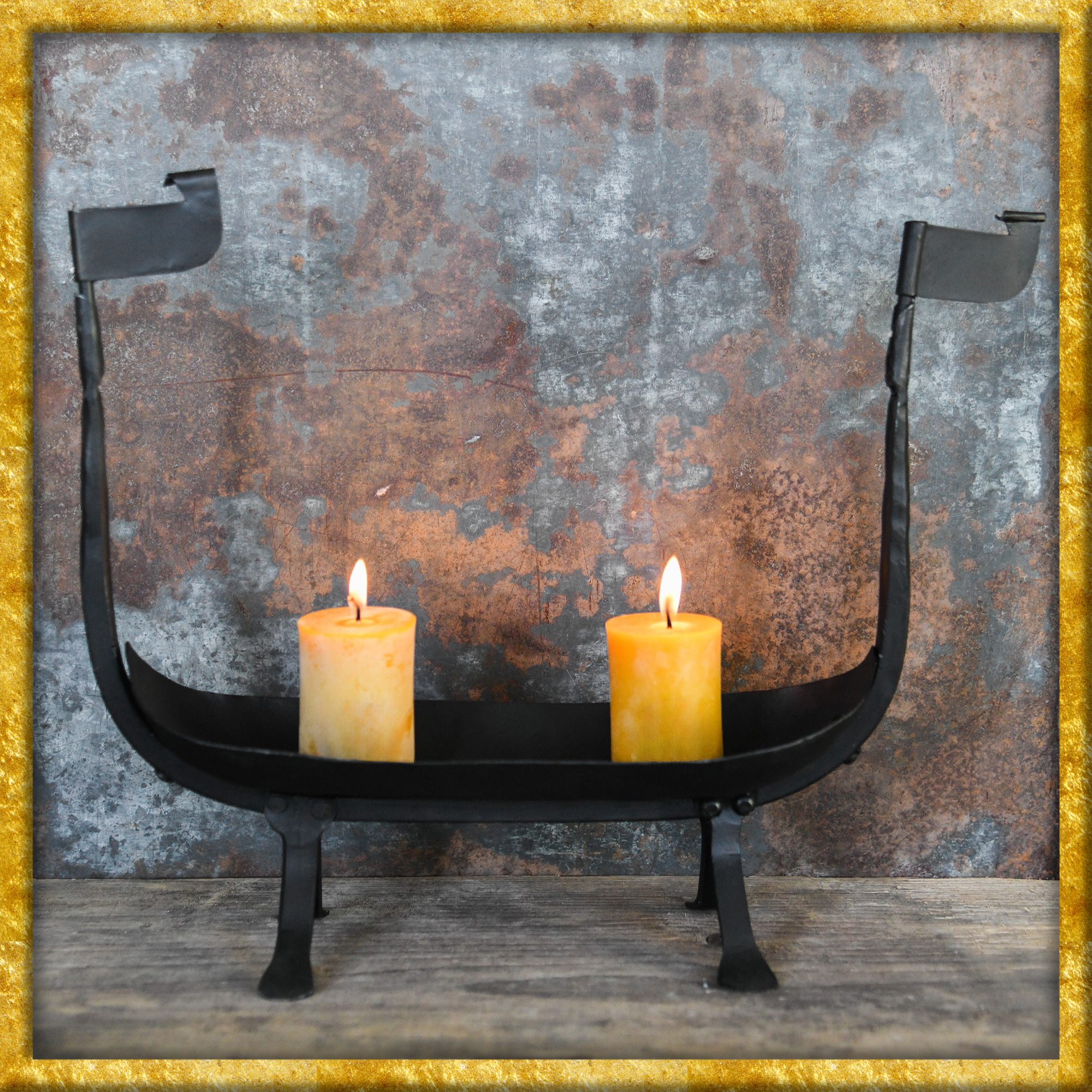 Dieser schöne Kerzenständer in Form eines Wikingerschiffes, bietet Platz für zwei Kerzen, die mittels Dornen sicher befestigt werden können. Der Kerzenständer wurde in Handarbeit aus Schmiedeisen geschmiedet.