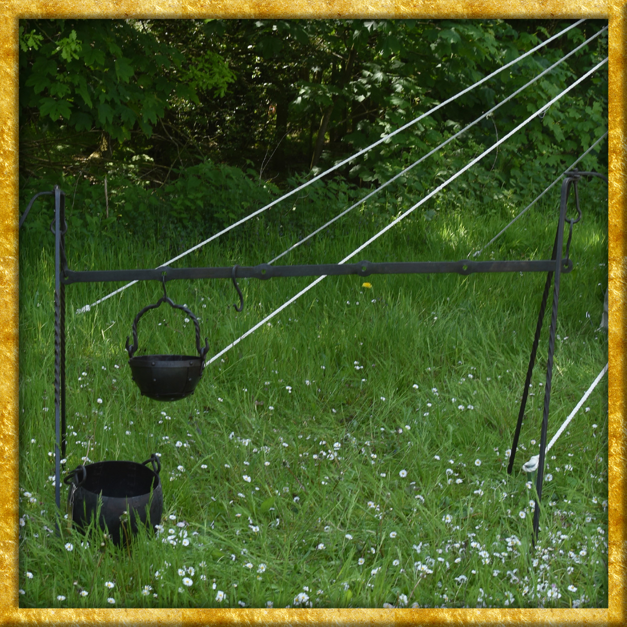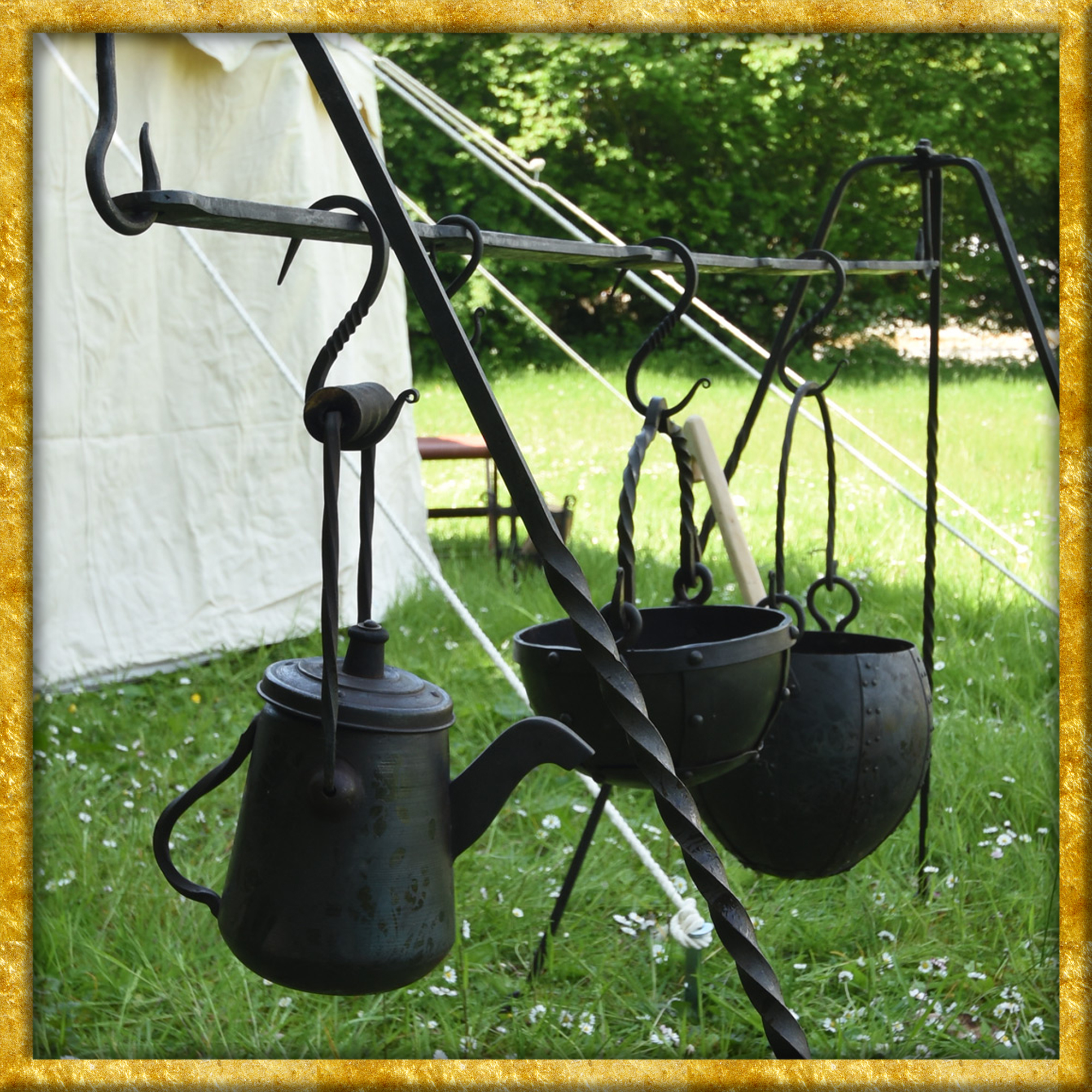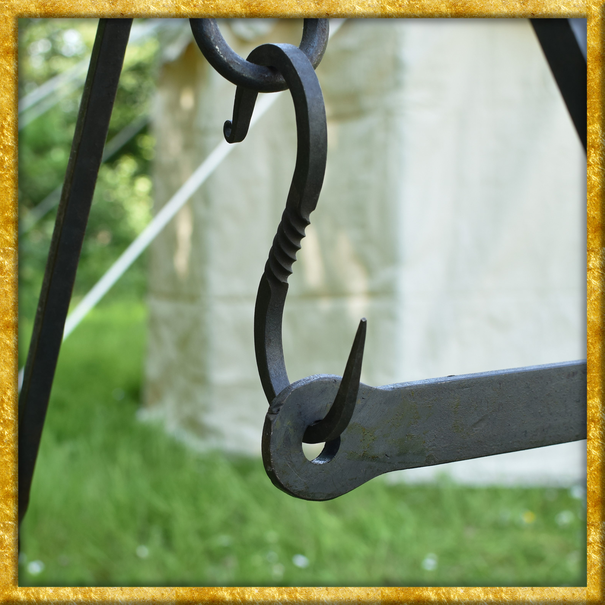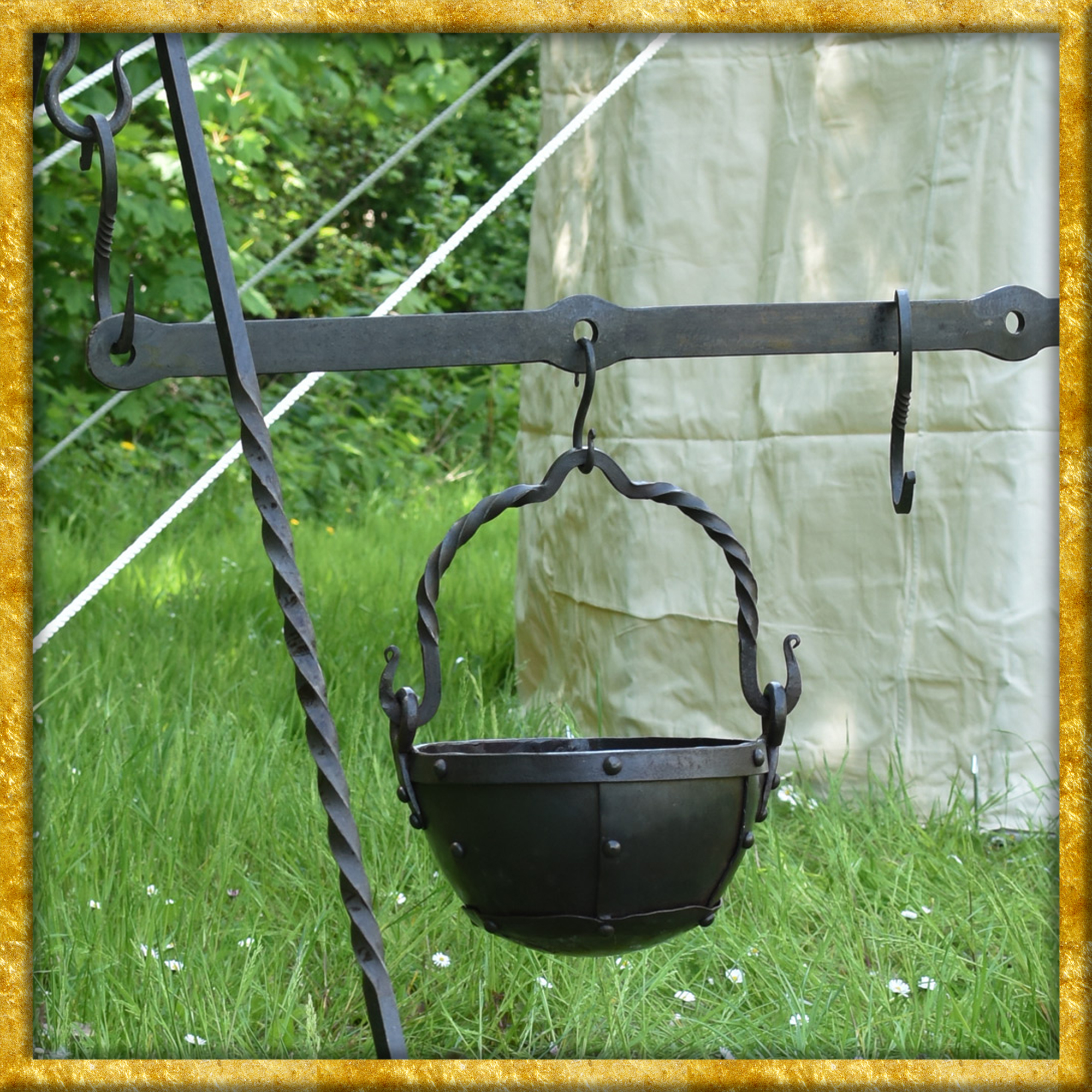 Dieses feine, solide Stück Schmiedekunst eignet sich einfach perfekt für den Lageralltag auf Mittelaltermärkten und Reenactment-, Living History- oder LARP-Events. Natürlich macht die Eisenstange auch im modernen Alltag was her, und mit ein bisschen Ideenreichtum, etwas handwerklichem Geschick und den passenden Accessoires kann man sie einsetzen, um dem Haus, Garten, Balkon oder der Terrasse eine urige, rustikale Atmosphäre zu verleihen.