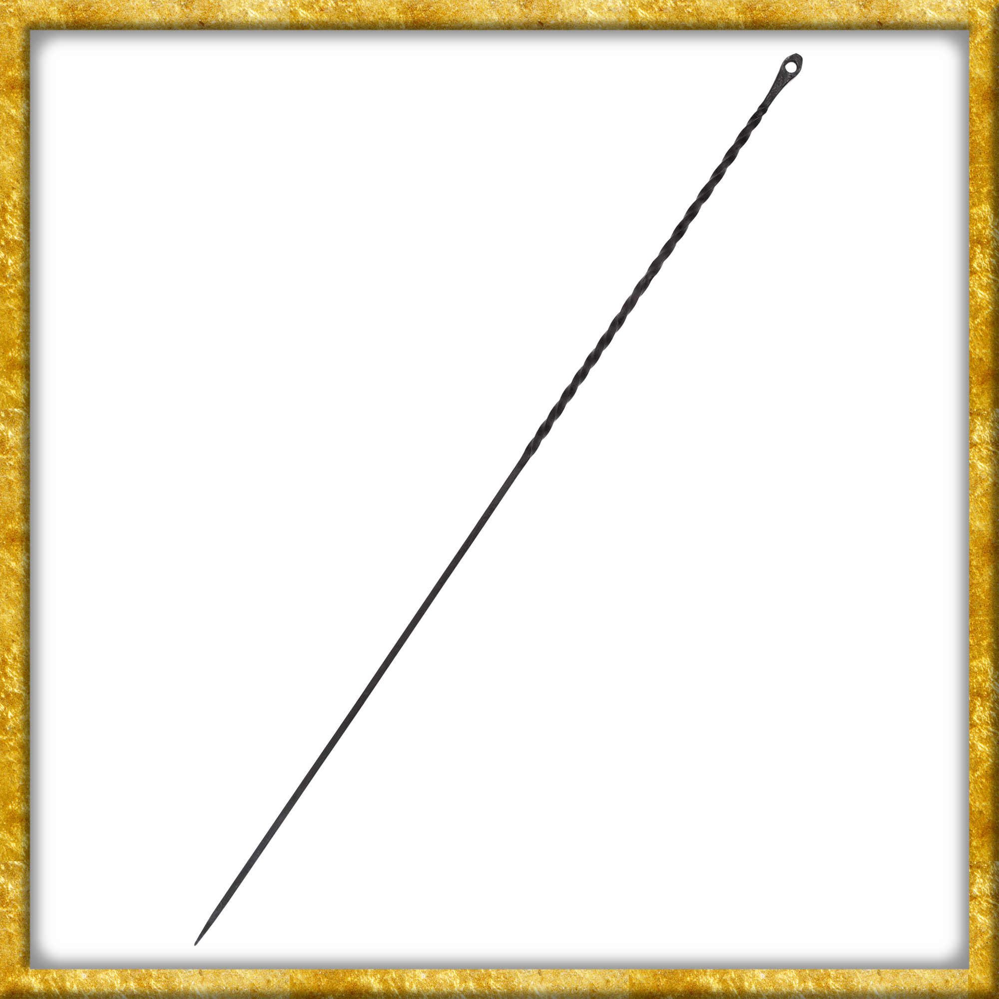 Diese stabile Vierkantstange aus Stahl wurde von Hand geschmiedet und ist über ca. 60cm tordiert. Das obere Ende ist ca. 8cm lang, 3cm breit und mit einem grosszügigen Loch mit Innendurchmesser ca. 2,7cm ausgestattet. Das untere Ende läuft spitz zu und kann dadurch leicht in den Boden dringen. Die Oberfläche ist unbehandelt, um den rustikalen, authentischen Charakter der Stange zu erhalten.