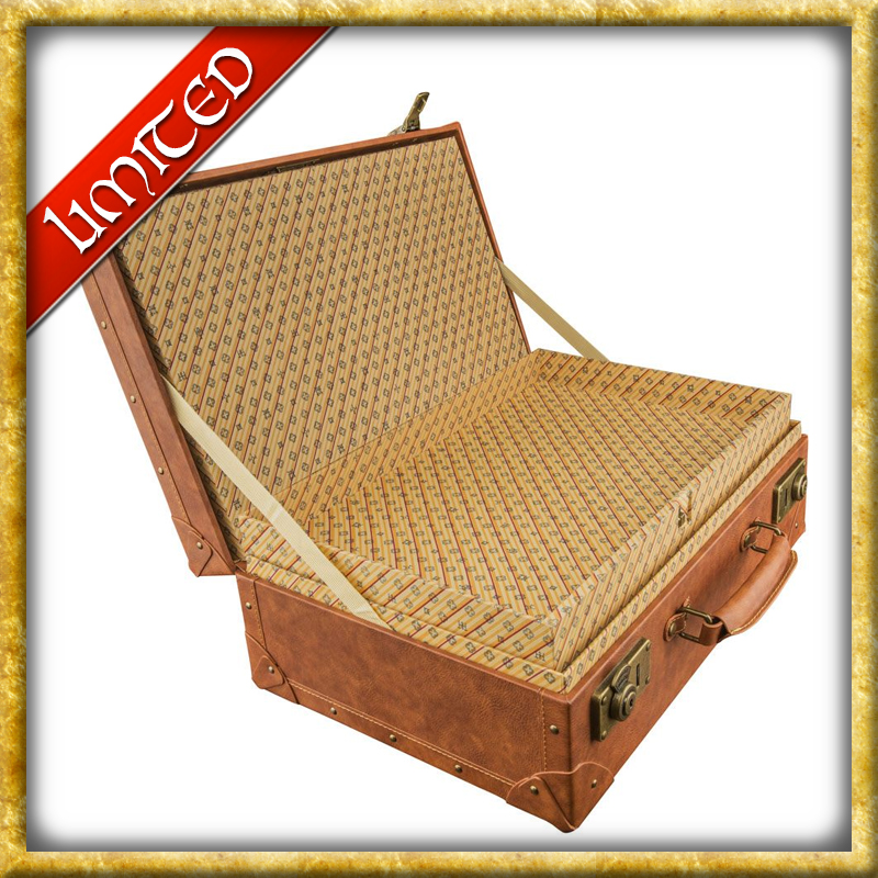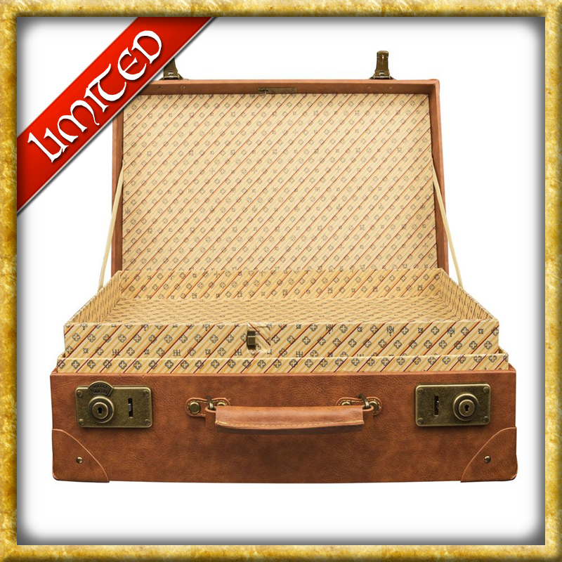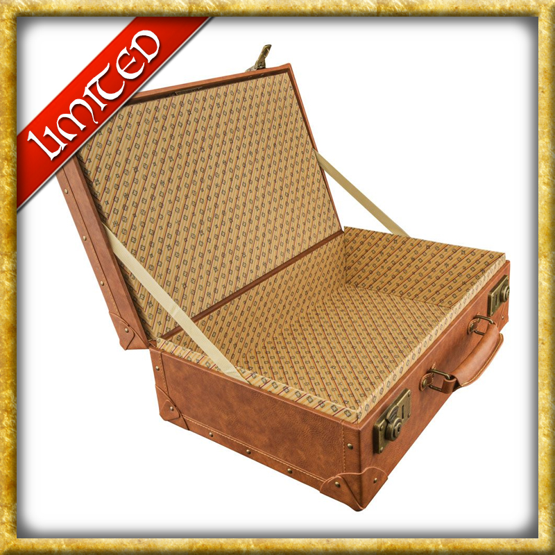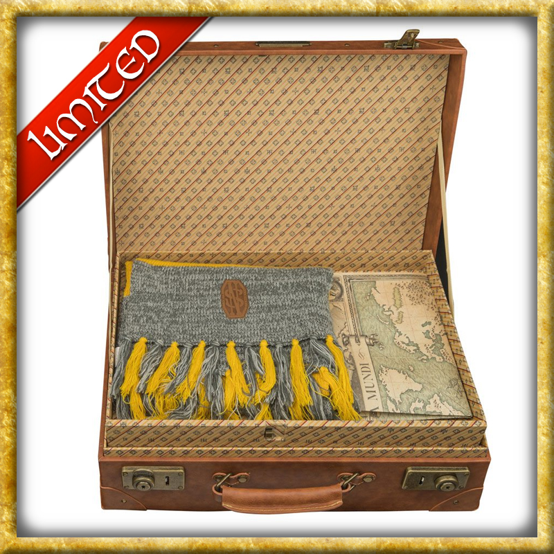 Zum Film Phantastische Tierwesen kommt diese originalgetreue Nachbildung von Newt Scamander's Koffer. Die hochwertige Replik wurde aus Holz und Kunstleder gefertigt. Das limitierte Sammlerstück kommt zusätzlich mit dem Schal von Newt Scamander und der Weltkarte Mappa Mundi.