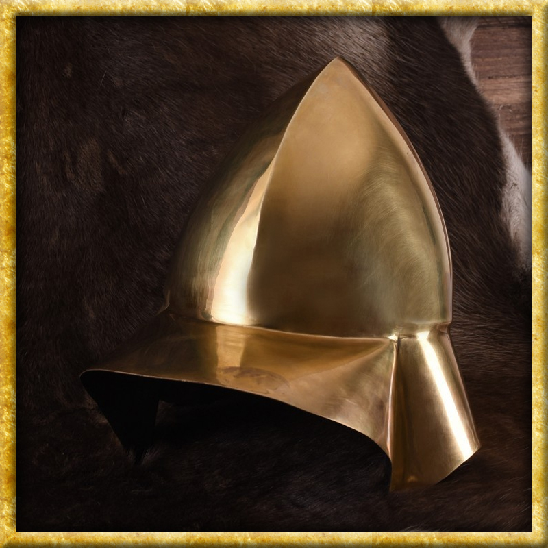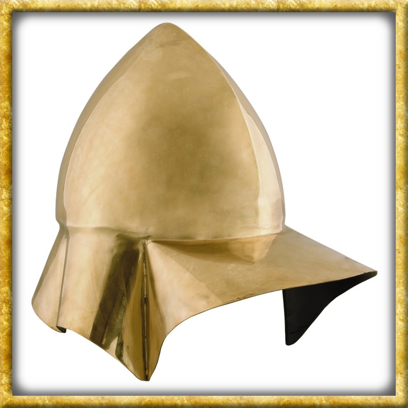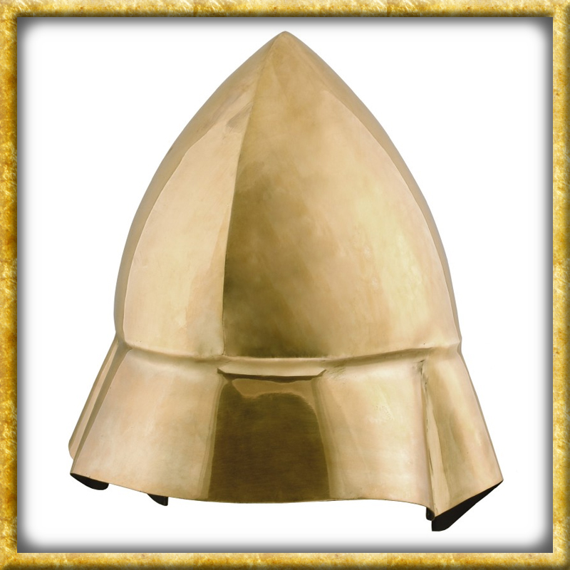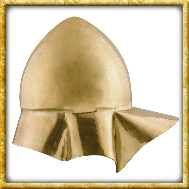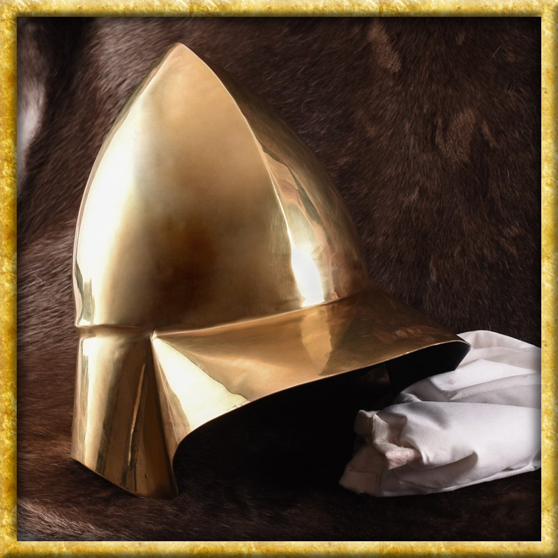 Der hier angebotene böotische Helm ist aus einem 1, mm starken Stück Messing gefertigt. Da der Helm keine eingearbeitete Auskleidung besitzt, erfolgt die Lieferung inklusive einer Polsterhaube aus Baumwolle, die ein bequemes Tragen ermöglicht. Dieser schöne Helm ist somit ideal für Reenactment-Zwecke oder für LARP, Theater, etc.