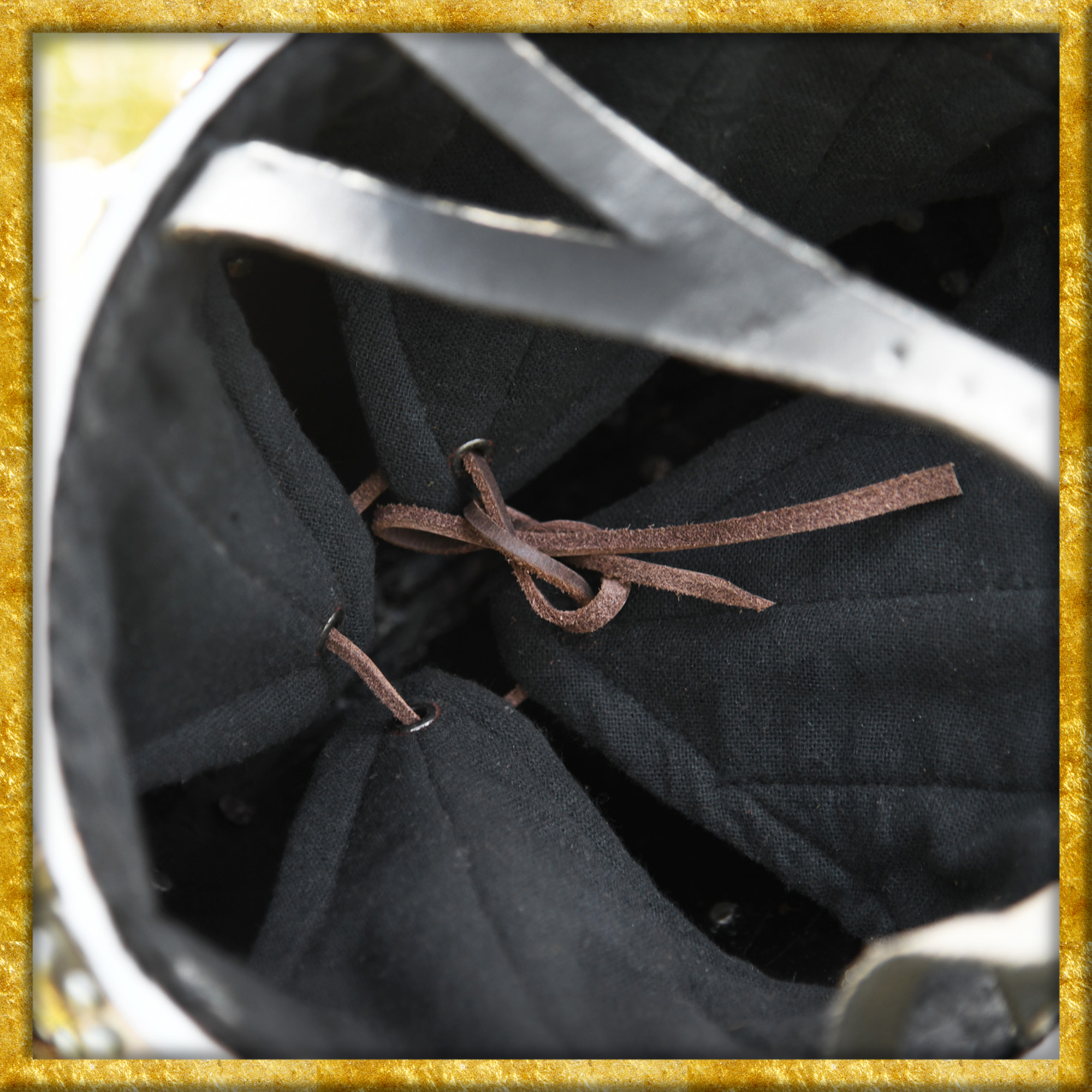 Diese Verarbeitung und die Überlappung gewährleistet höchste Robustheit und somit grossen Schutz beim Schaukampf. Mitgeliefert wird ein eingenietetes, hochwertiges und verstellbares gepolstertes Inlays und Kinnriemen aus Leder.