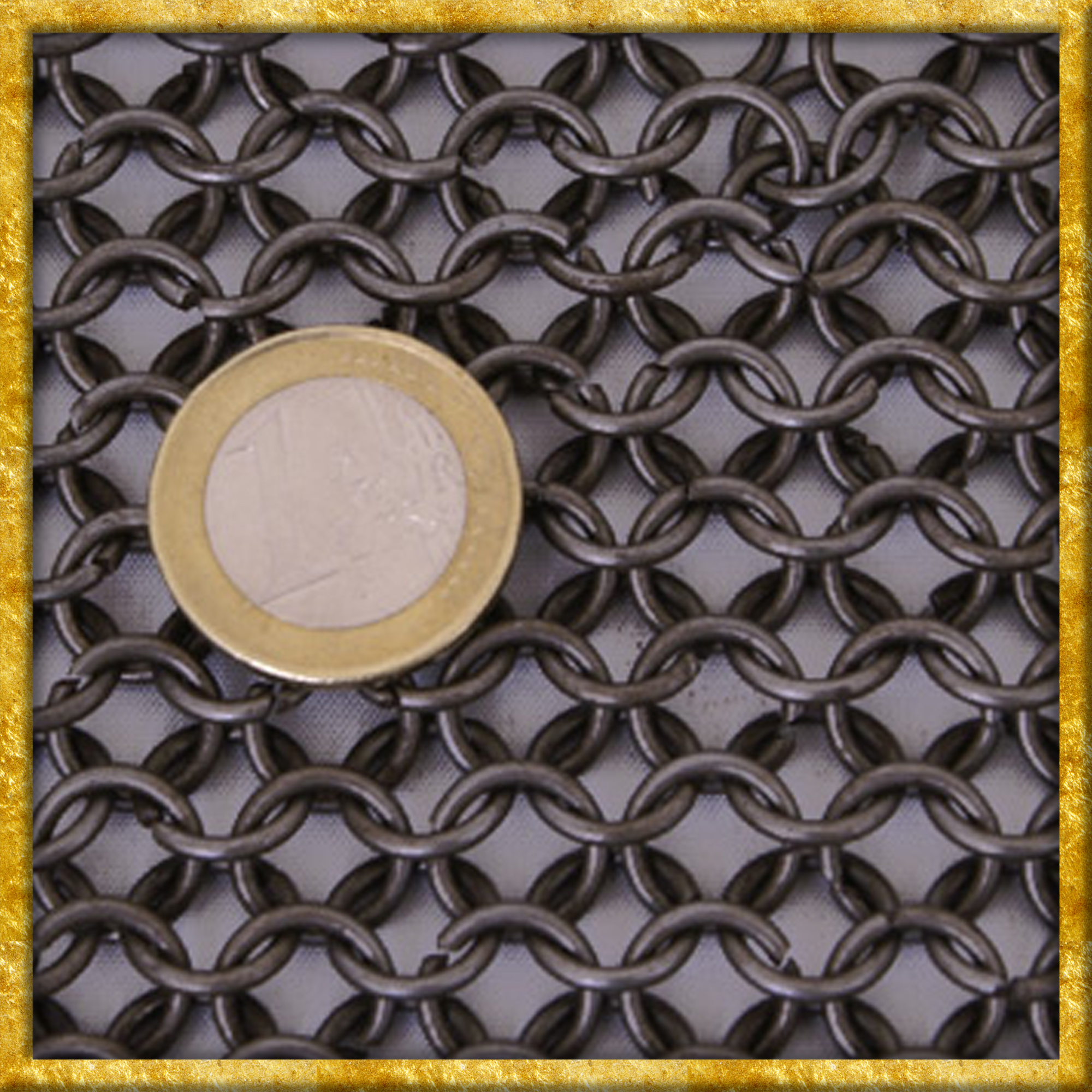 Das Kettengeflecht BTW, engl. Butted Tensile Wire, ist aus unvernieteten Kettenringen in einer 4 zu 1 in Flechtung hergestellt. Es eignet sich aufgrund seines guten Preis-Leistungs-Verhältnisses hervorragend für Einsteiger, die dennoch auf guten Schutz und solide Qualität Wert legen. Die Ringe sind unbehandelt und können rosten, geben aber dem Geflecht ein authentisches Aussehen.
