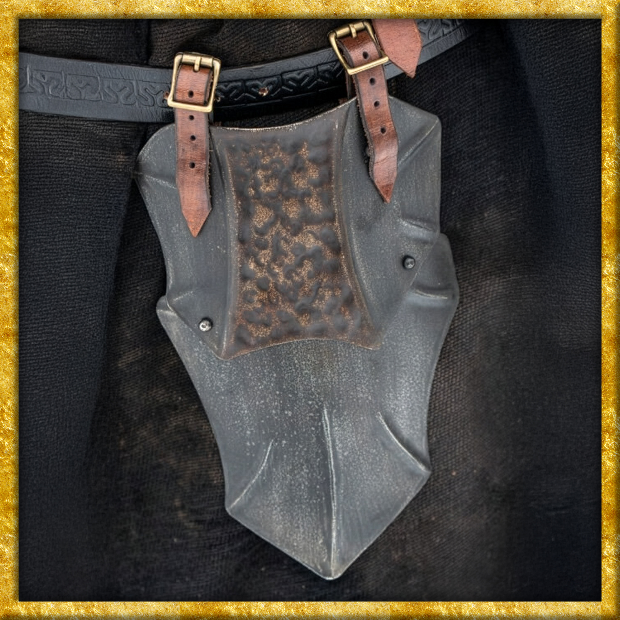 Das raue Design, die dunkle Epic-Dark-Oberfläche und die rostige Patina schaffen einen Look, der wie geschaffen ist für nordische Plünderer, wilde Barbaren oder Orks auf Beutezug. Das erhabene Muster verstärkt den brutalen Stil, während die kräftigen Lederriemen aus pflanzlich gegerbtem Leder für sicheren Halt sorgen.