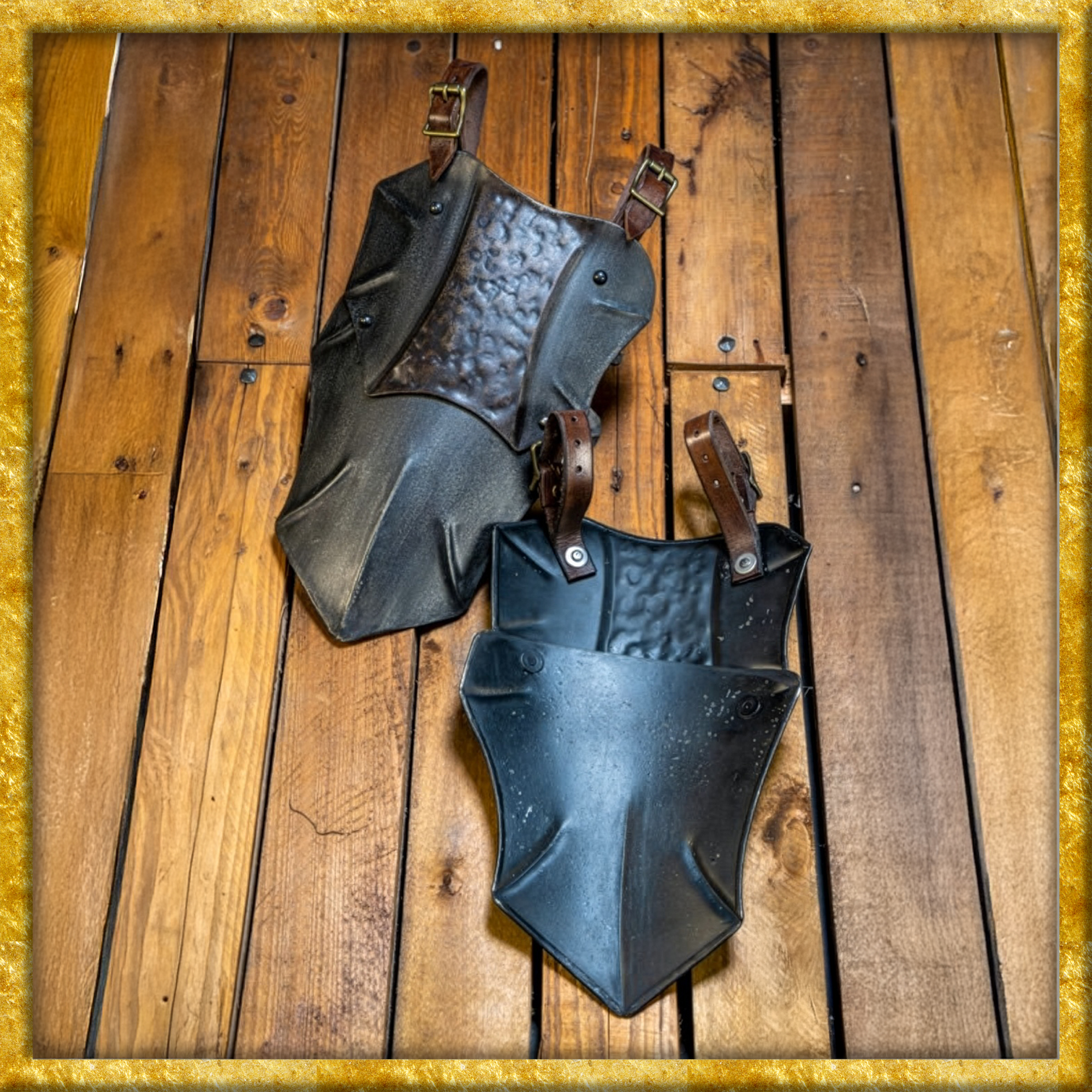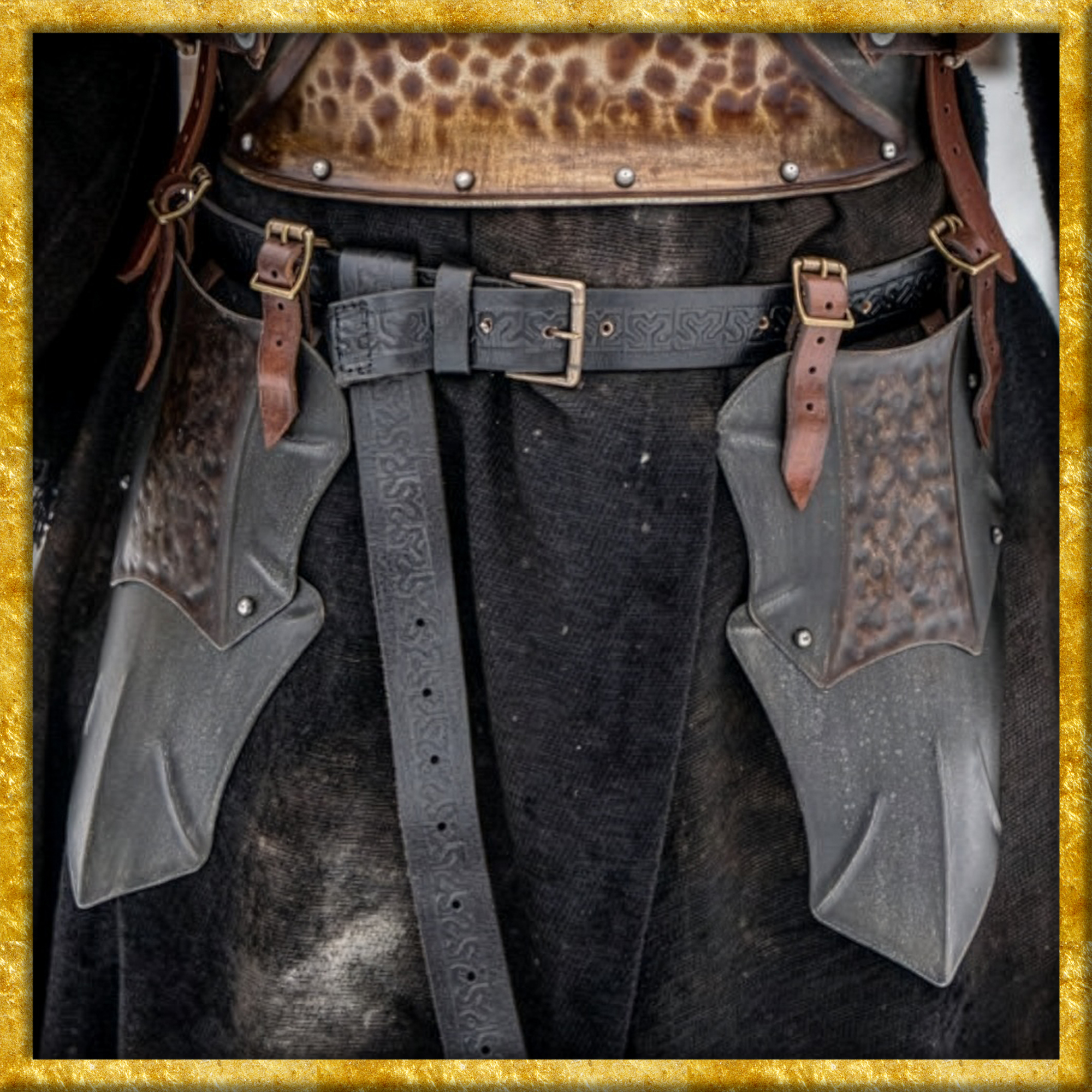 Unser Räuber Oberschenkelschutz – brutale Optik, starke Präsenz, perfekte LARP-Tauglichkeit. Diese stahlharten Tassets werden einfach an deinem Gürtel befestigt und bieten dir zusätzlichen Schutz für Unterbauch und Oberschenkel, ohne dich in deiner Beweglichkeit einzuschränken. Perfekt für Kämpfer, die im Getümmel frei agieren müssen – und trotzdem furchteinflössend wirken wollen.
