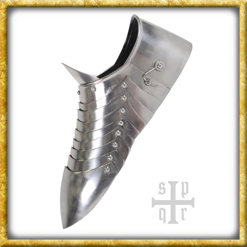 Diese gegliederte Fussrüstung ist für historisches Reenactment und LARP gleichermassen geeignet. Sie ist ideal für Spätmittelalter-Kulissen und wird Deine Darstellung eines stolzen Ritters einfach perfekt machen.