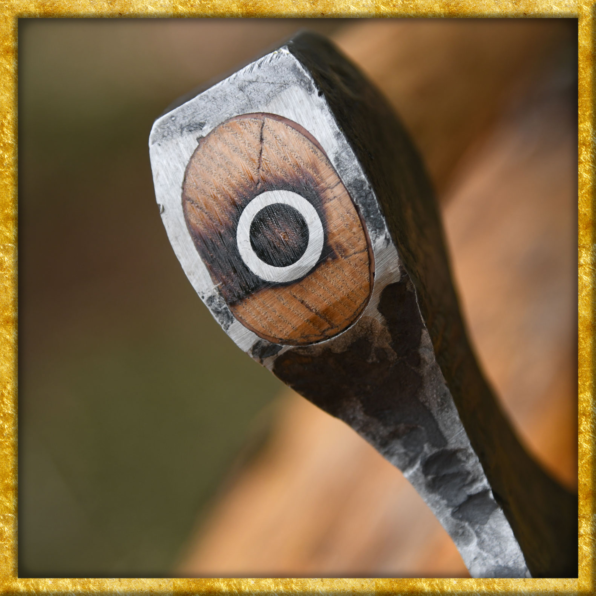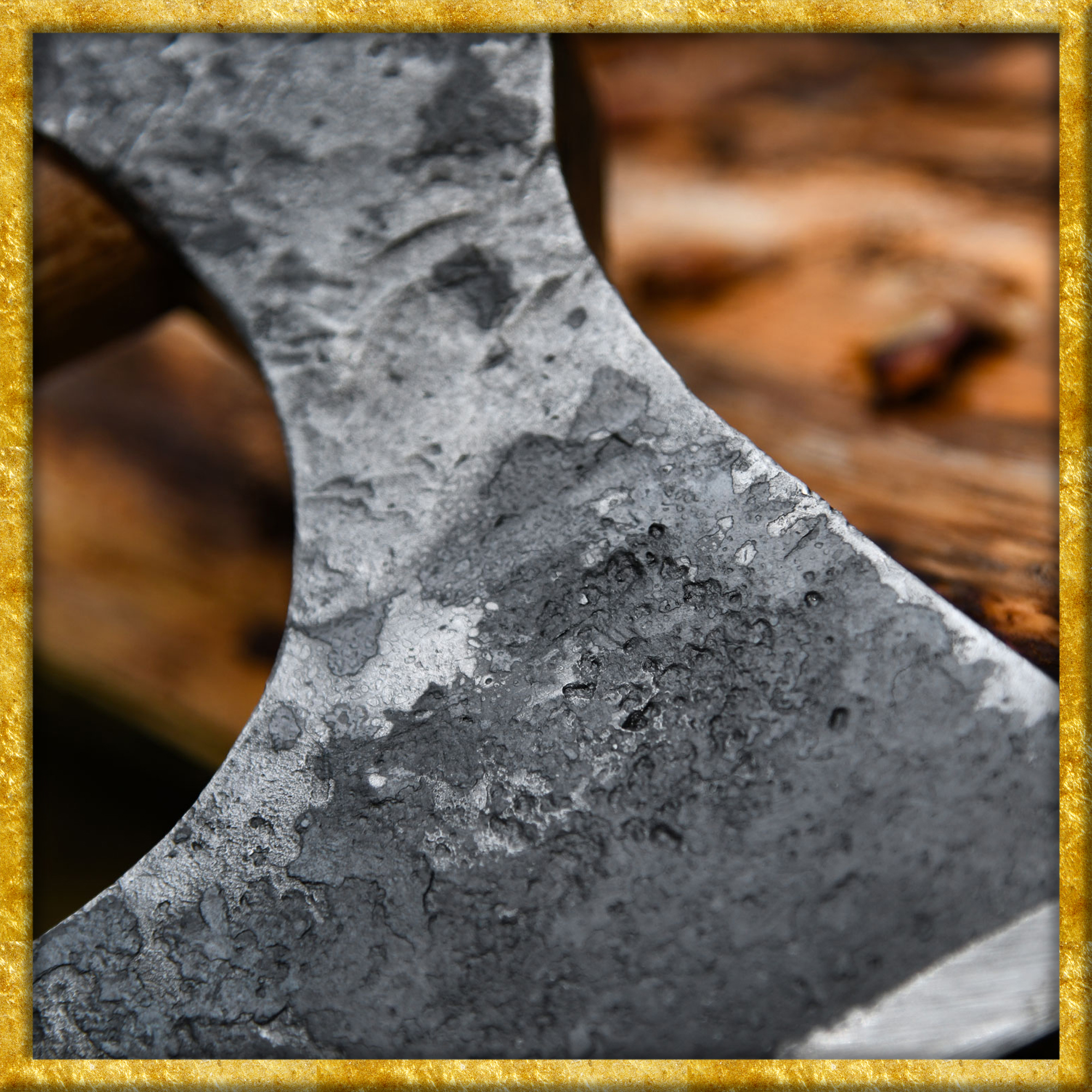 Diese Wikingeraxt verfügt über ein Axtblatt vom Petersen Typ D. Das Blatt dieser Axt besteht aus Kohlenstoffstahl und ist von Hand geschmiedet. Der Axtstiel ist aus robustem Eschenholz gefertigt.
