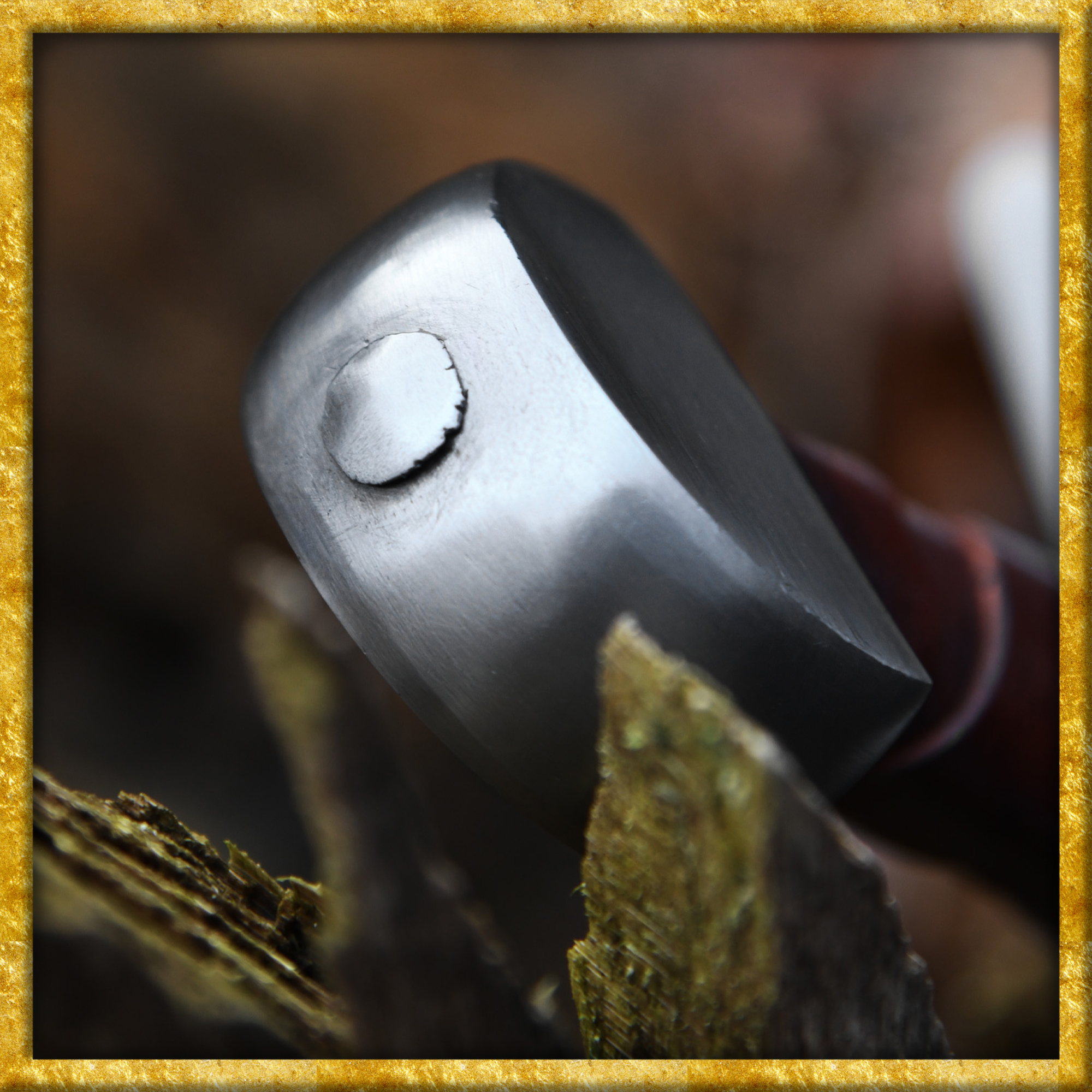 Das Schwert kommt mit einer sehr schönen Holz-Lederscheide mit Holzbügel als Gürtelschlaufe für max. 5 cm breite Gürtel. Die Scheide besitzt zudem ein Ortblech aus Stahl.