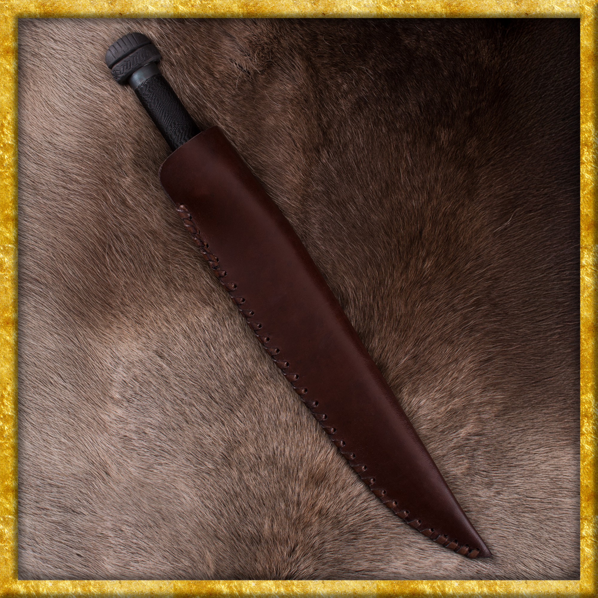 Geliefert wird der Wikingerdolch samt stabiler, hochwertiger Scheide aus 4mm starkem, vegetabil gegerbtem Leder mit schöner Flechtnaht.