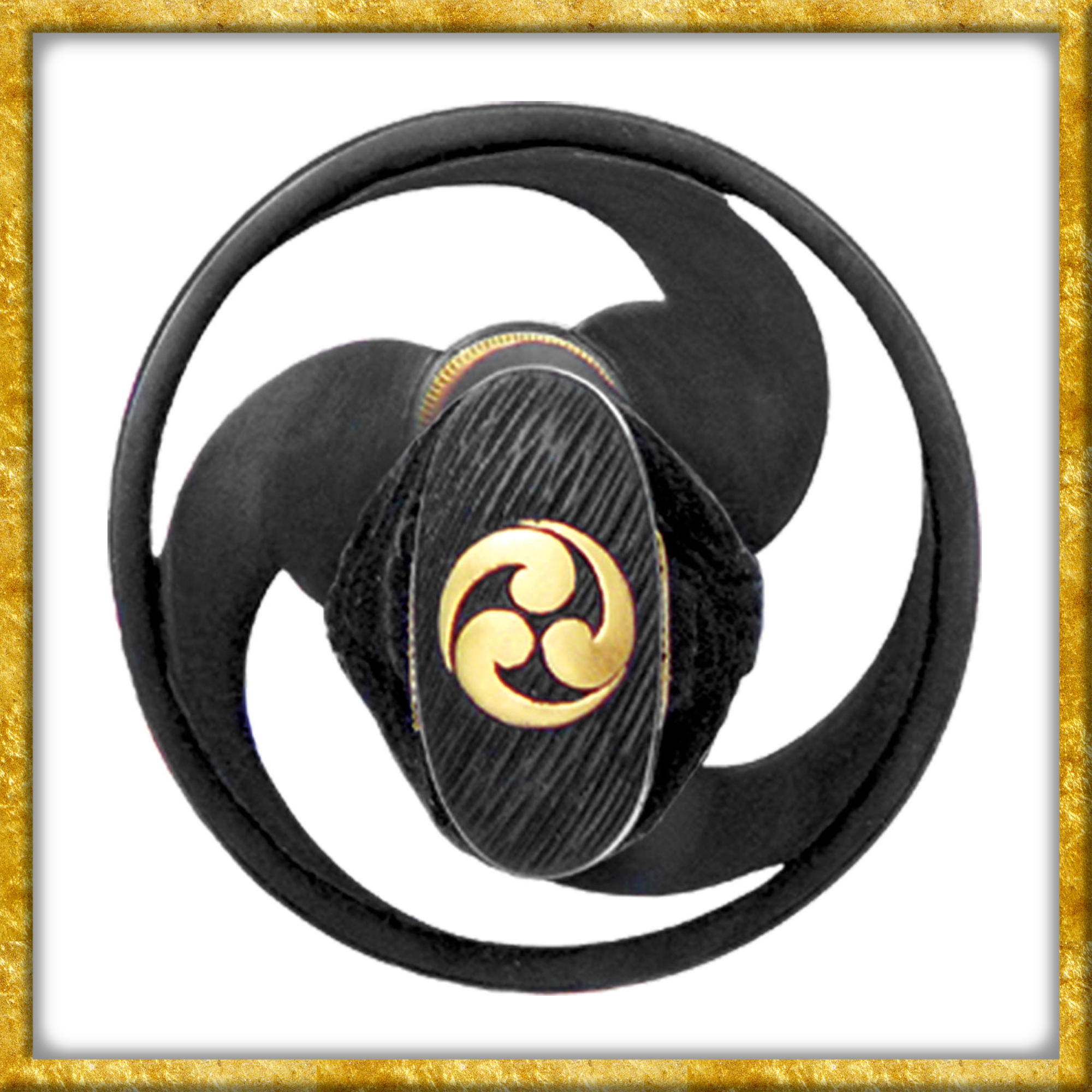 Das von Paul Chen für Hanwei kreierte Great Wave Katana zeigt das japanische Tomoe-Motiv. Tsuba, Fuchi und Kashira sind aus geschwärztem Eisen gefertigt und mit dem Tomoe-Mon verziert.