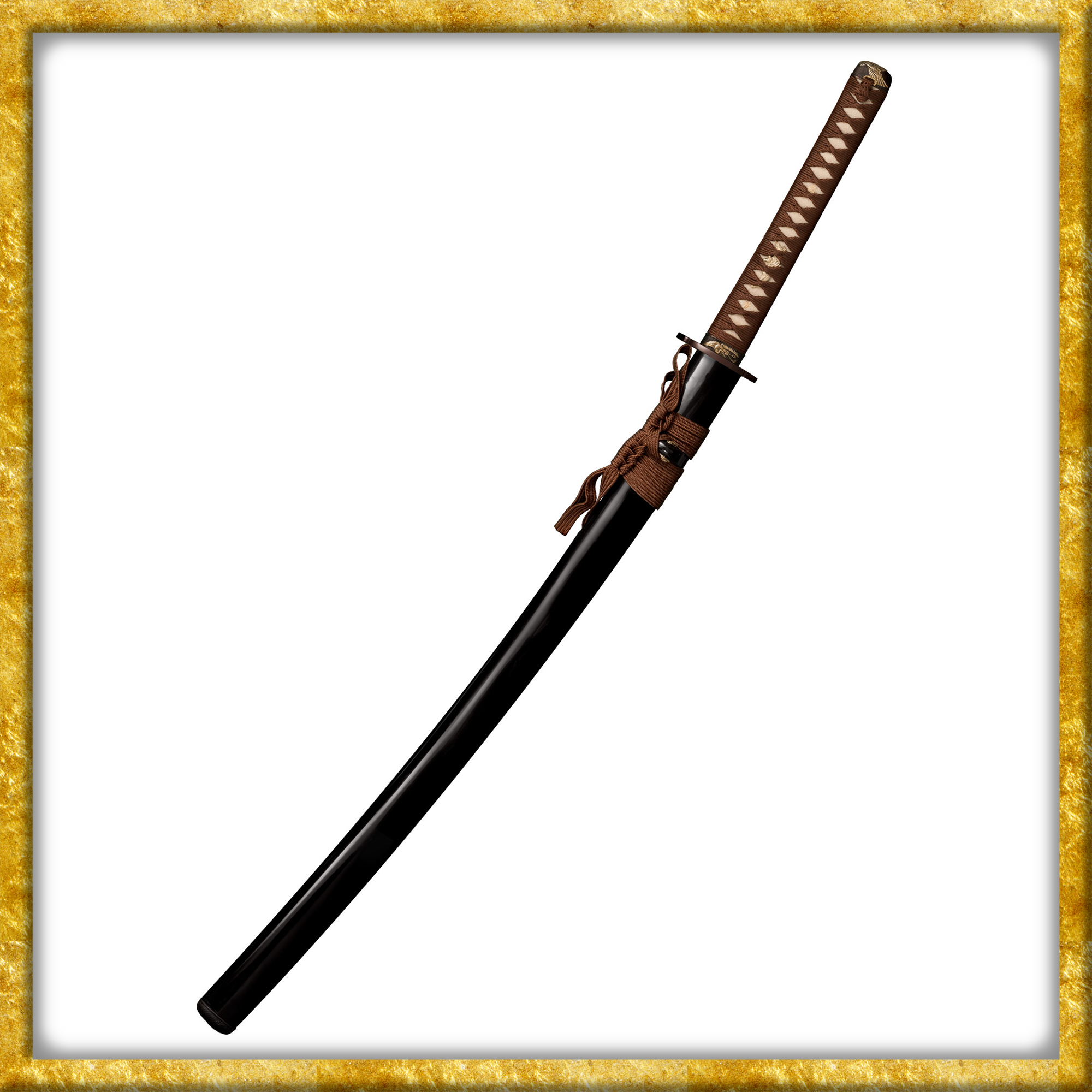 Dieses atemberaubend schöne Schwert, das mit einer in glänzendem Schwarz lackierten Saya geliefert wird, verdient ohne jeden Zweifel einen Ehrenplatz in Deiner Sammlung!