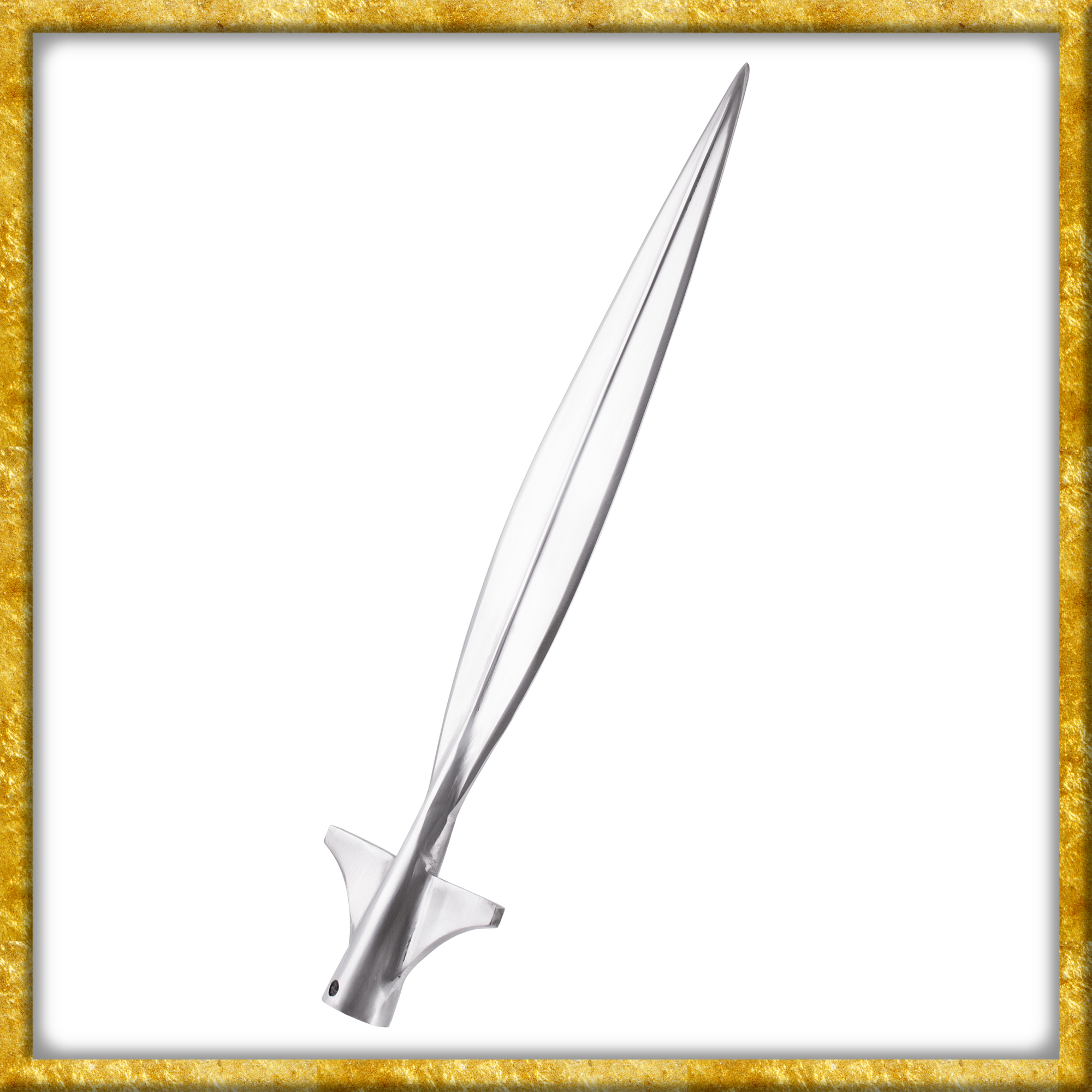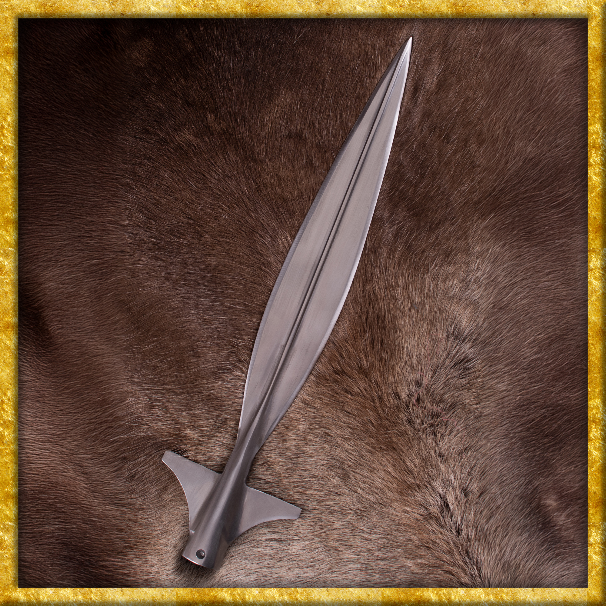 Bitte beachte, dass diese Speerspitze in erster Linie als Sammlerstück, Dekorationsobjekt oder Requisit konzipiert wurde und für den Schaukampf nicht geeignet ist! Die Klingenspitze ist nicht abgerundet und die Kanten sind zwar nicht geschärft, aber angeschliffen. Mit geeigneter Ausrüstung und nötiger praktischer Erfahrung könnten sie bei Bedarf scharf geschliffen werden.