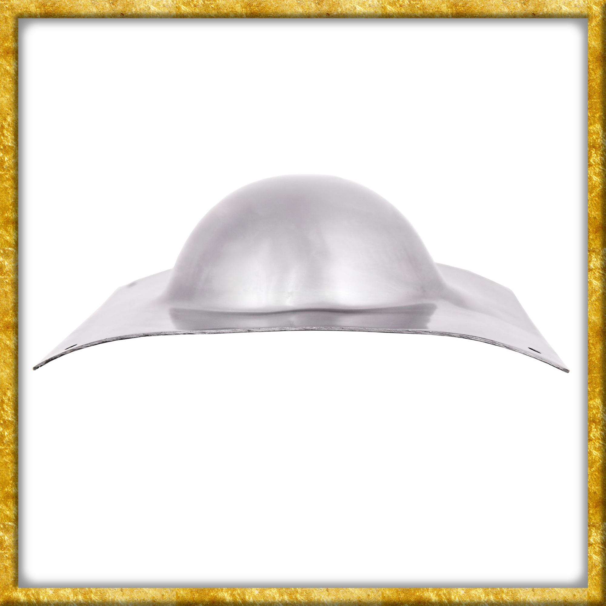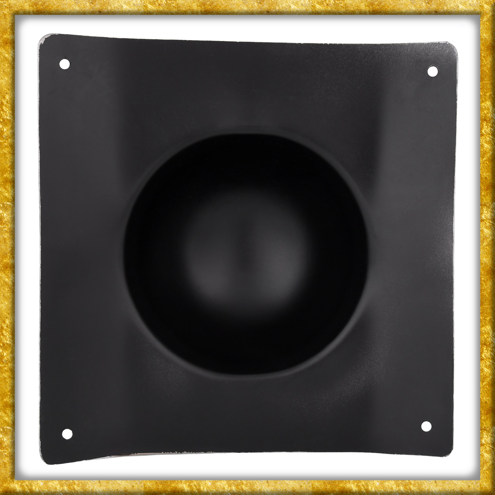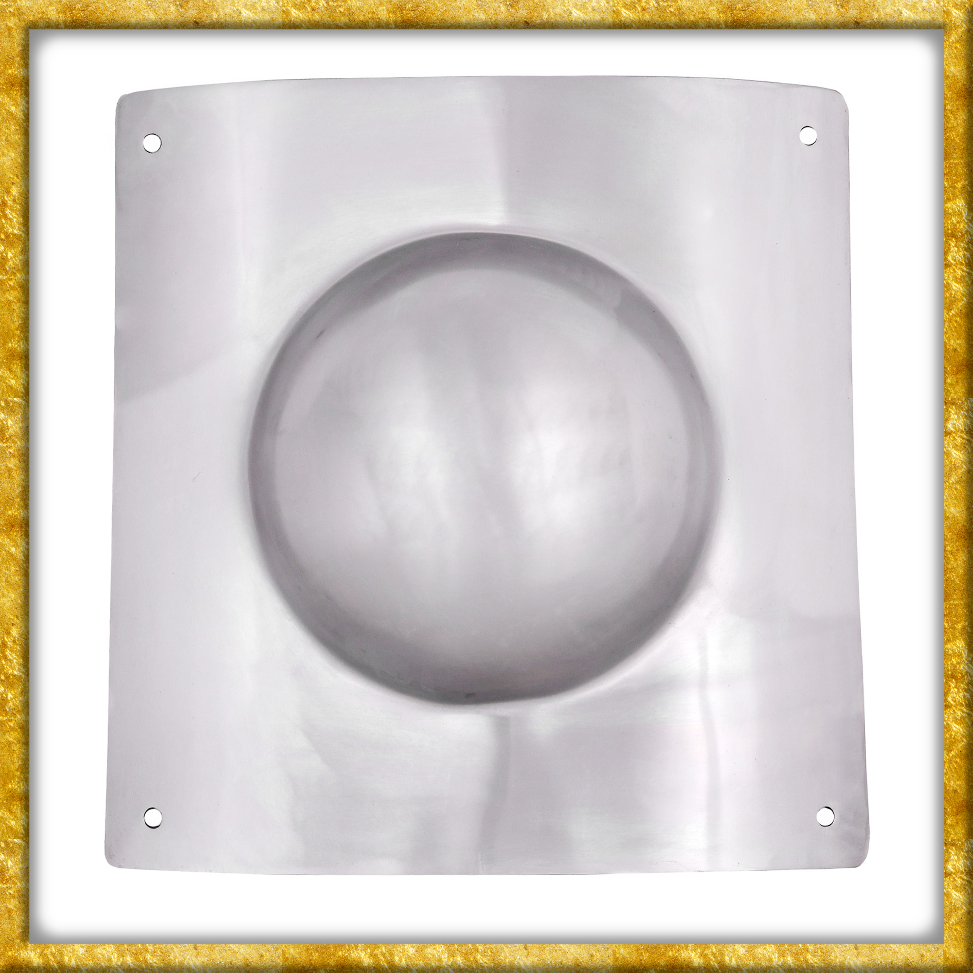 Dieser römische Schildbuckel ist quadratisch geformt, gewölbt und getrieben aus ca. 1,6mm starkem Stahl. Der Durchmesser der Wölbung beträgt ca. 12,5cm und die Tiefe ca. 5,5cm. Der Biegeradius beträgt 1,8cm. Er eignet sich ideal für eigene Schildbauprojekte. Der Schildbuckel ist vorgebohrt, das Befestigungsmaterial allerdings nicht im Lieferumfang enthalten.