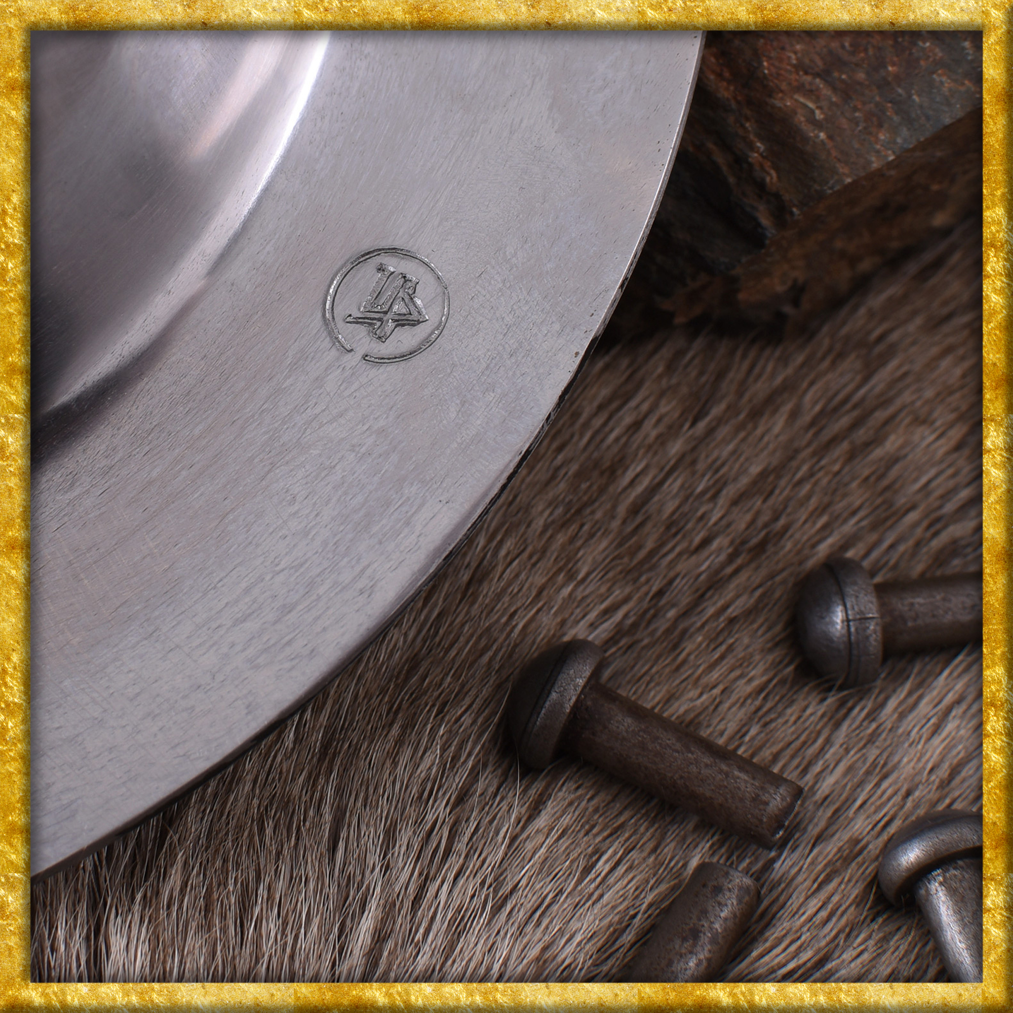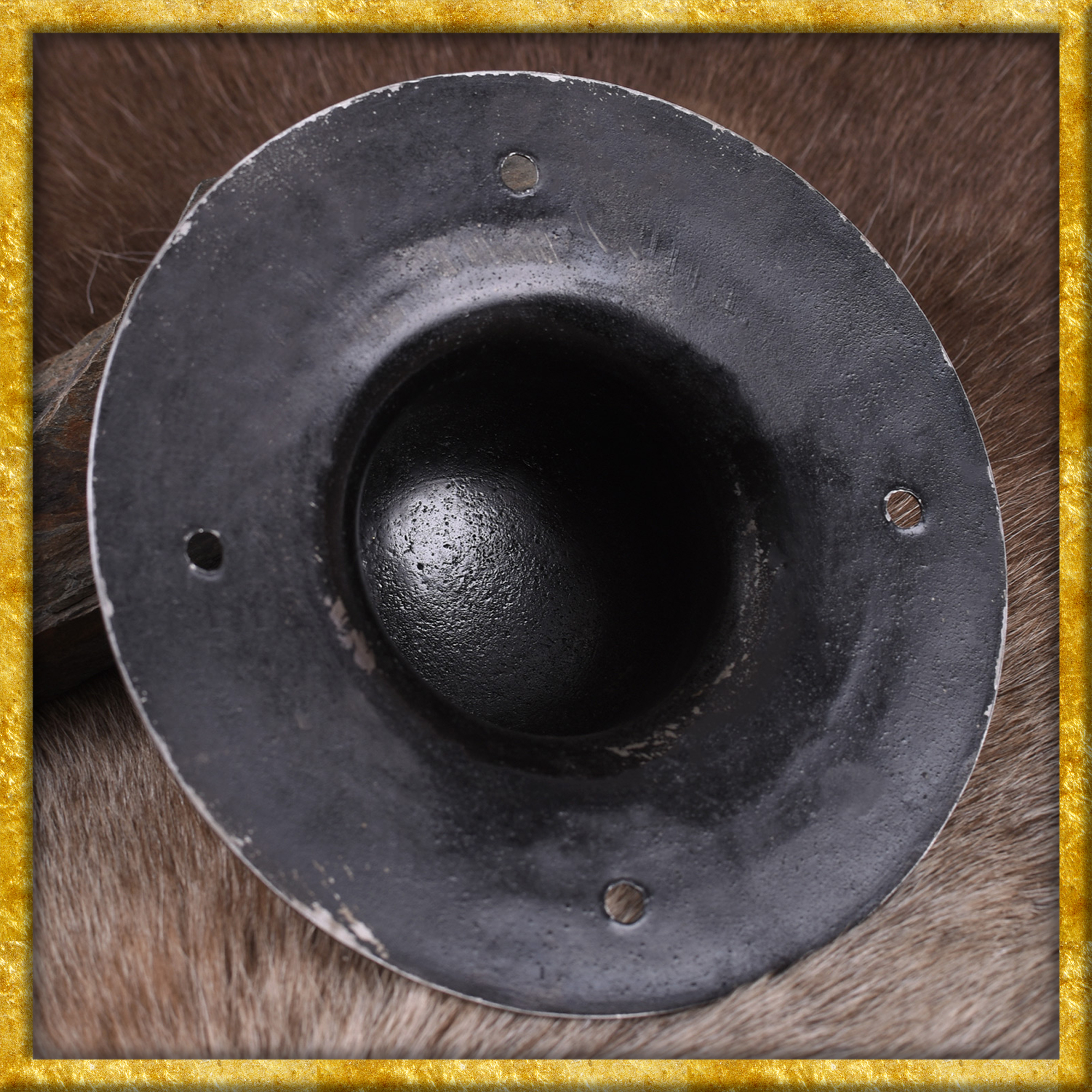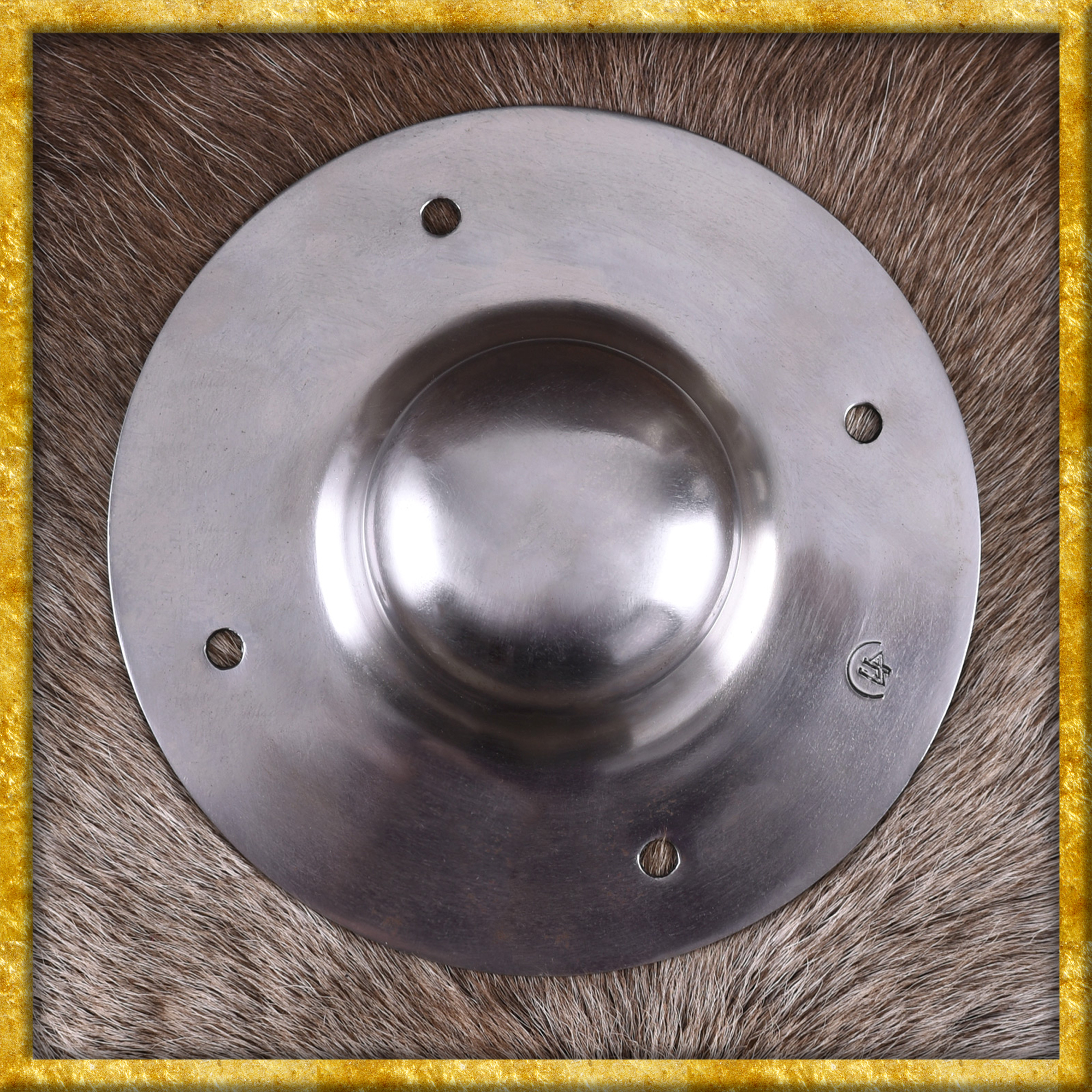 Dieser voll schaukampftaugliche Schildbuckel wurde aus 2mm starkem Stahl hergestellt. Mitgeliefert werden vier Nieten.