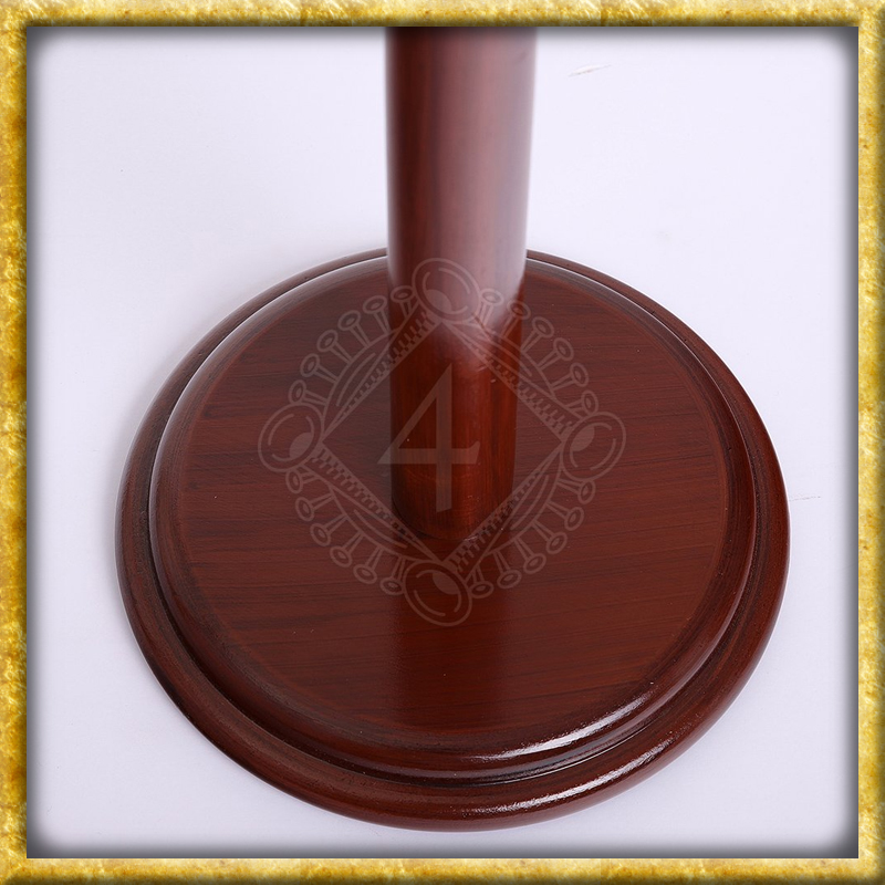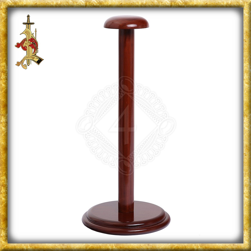 Präsentieren Sie Ihren wertvollen Helm auf diesem schönen Holzständer aus Holz mit Eichenfurnier. Die Oberfläche ist lackiert und verleiht dem Helmständer ein edles Äusseres. Ideal zum Aufstellen und Präsentieren von Mittelalter Helmen.