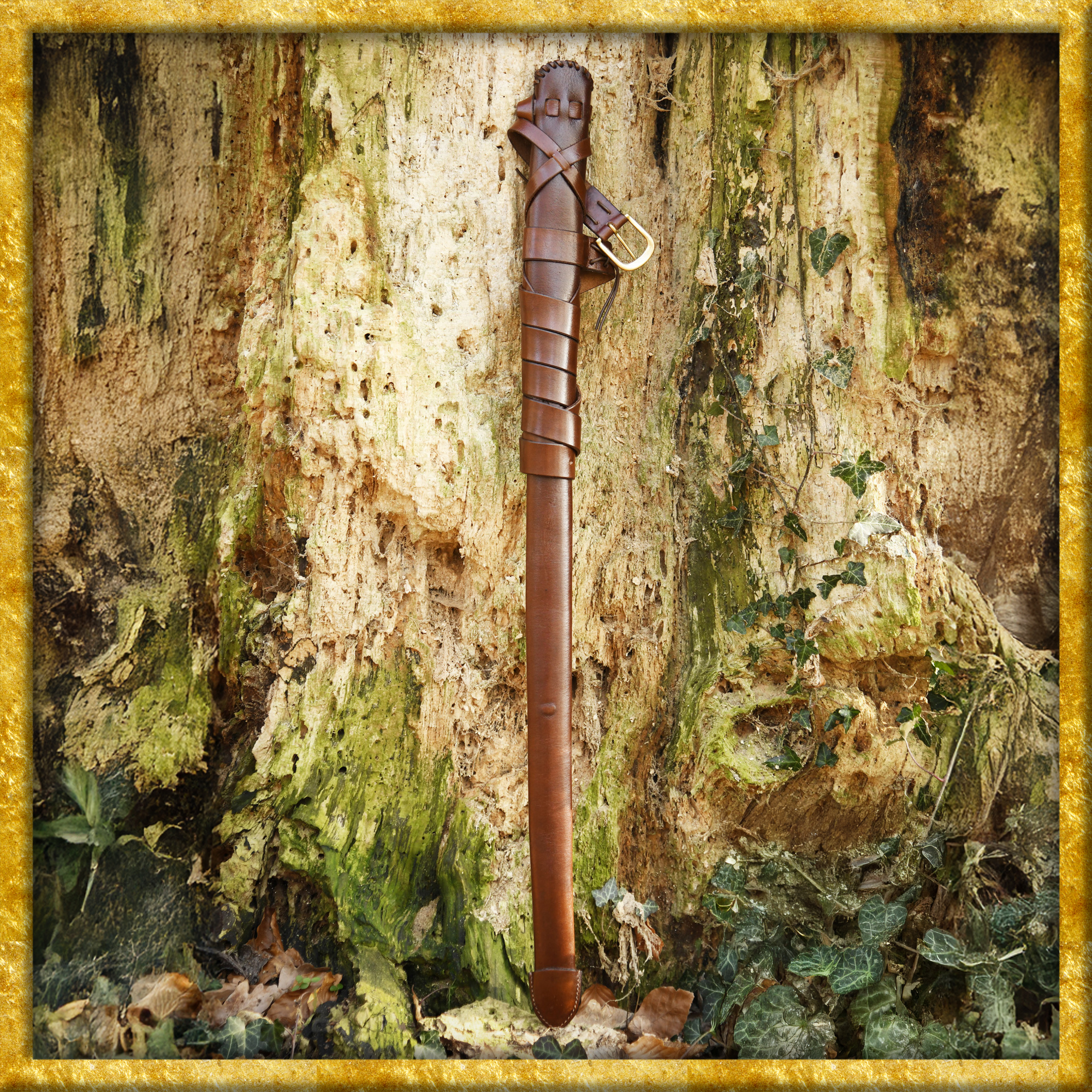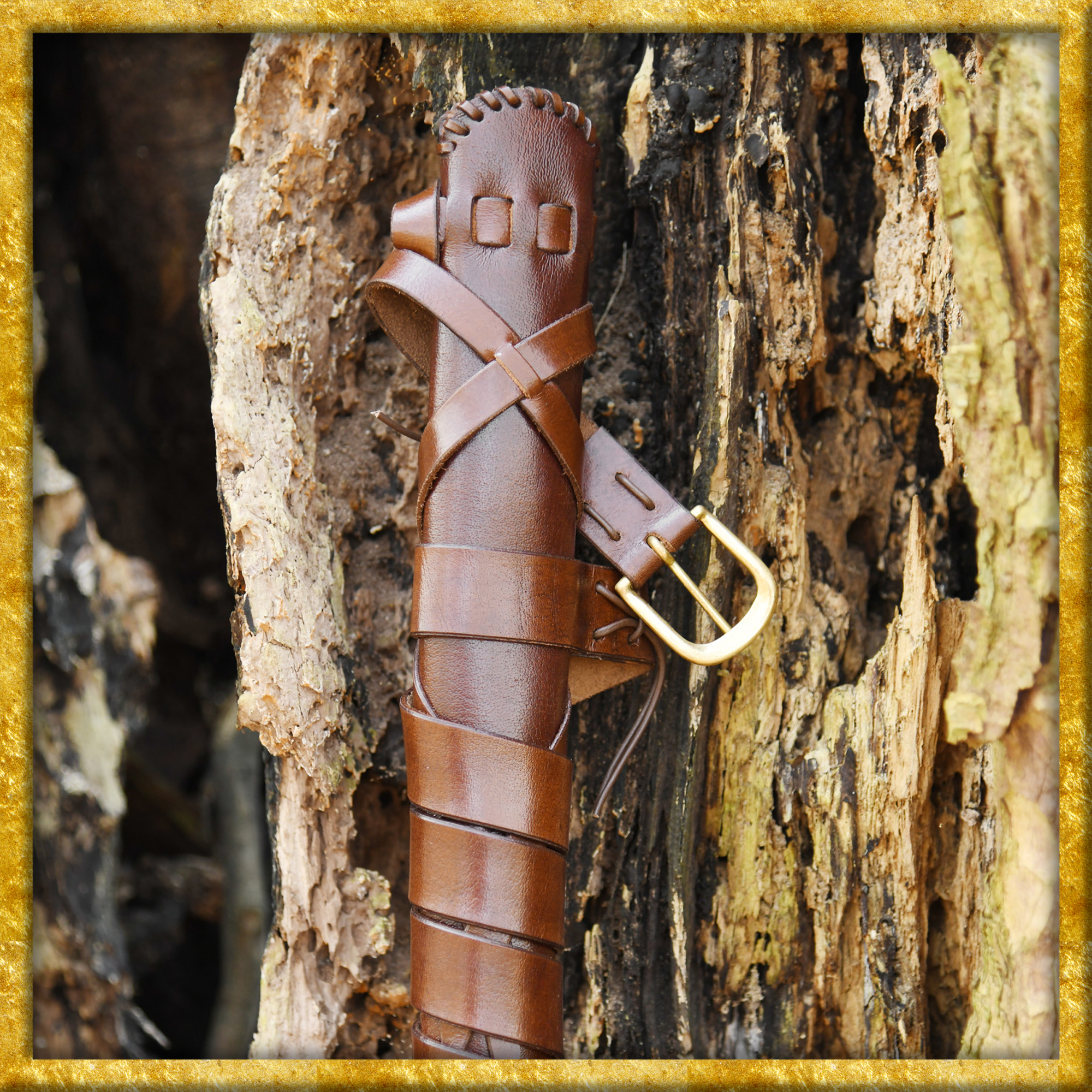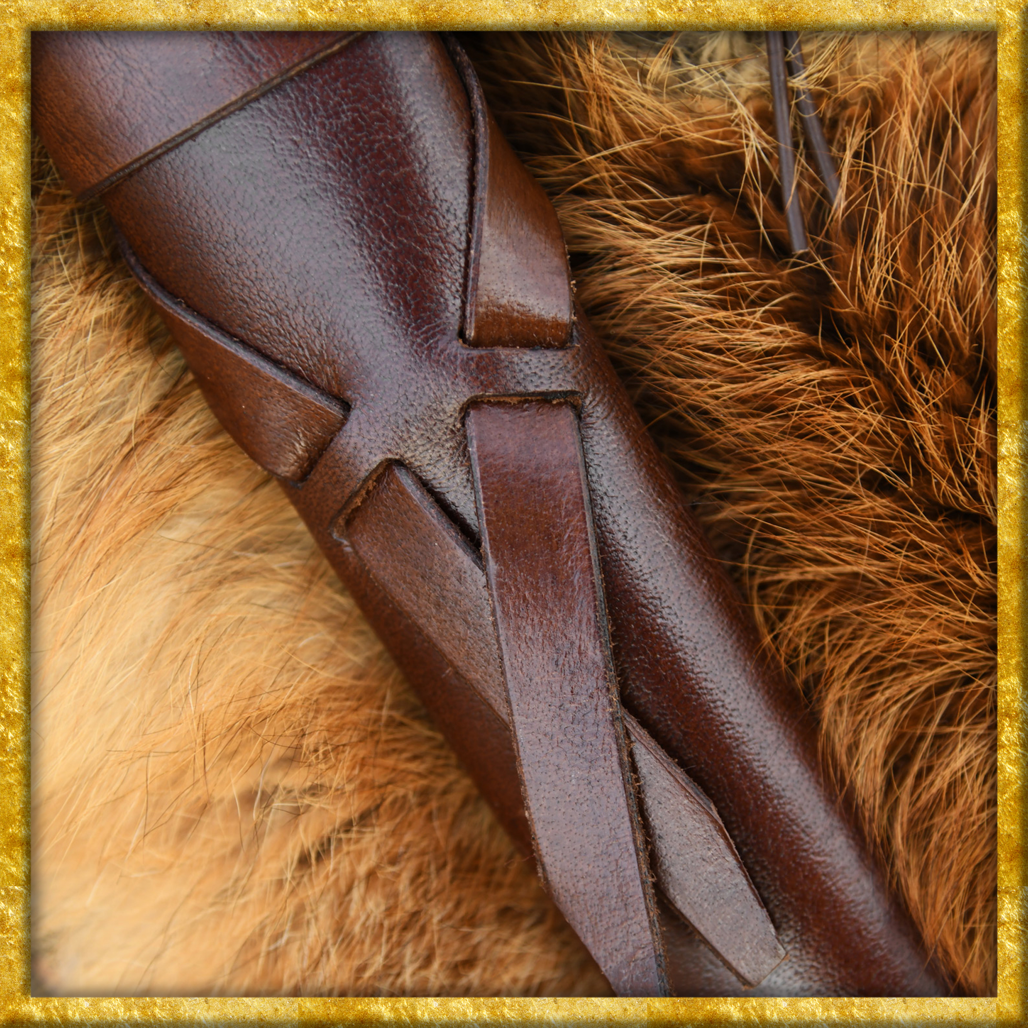 Diese schöne Schwertscheide eignet sich ideal für Frühmittelalter- / Wikingerschwerter und ist aus vegetabil gegerbtem, ca. 3mm starkem Leder handgefertigt sowie rückseitig mit Kreuzstichen verziert. Sie ist an der Spitze mit einer zusätzlichen Lage Leder verstärkt, und der abgerundete Mund ist auf schöner Weise mit Lederbändern gesäumt. Die Öffnung ist ca. 4cm breit.
